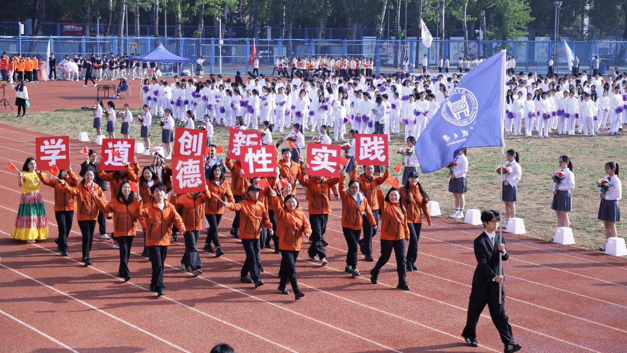 “德性实践,学道创新。强身健体,勇创佳绩!”开幕式上,伴随着激昂的旋律,学院教职工们精神抖擞,身着统一服装,手持五星红旗走过主席台,步伐铿锵,口号响亮,赢得了现场师生的阵阵掌声。