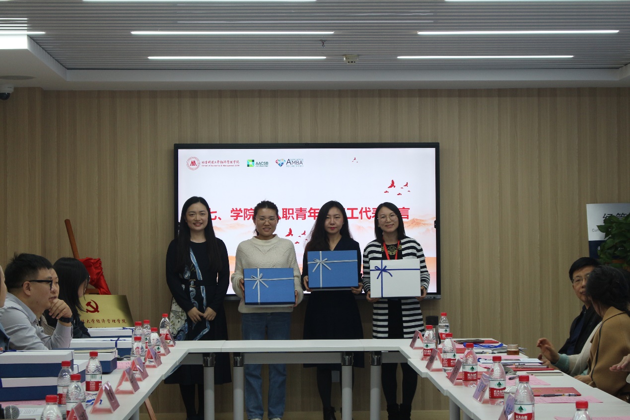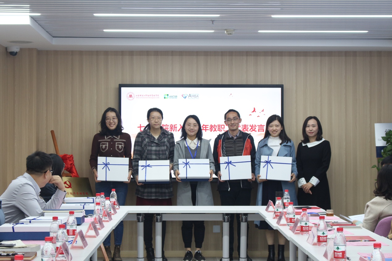 会上,学院副院长范小华、学院副书记、副院长倪宇分别向新入职青年教职工赠送入职礼包。