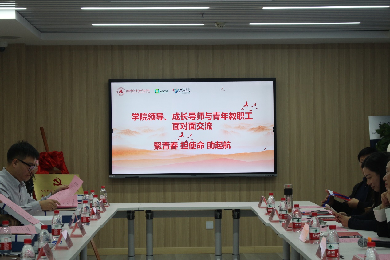 会后,学院领导、成长导师与青年教职工进行了以“聚青春、担使命、助起航”为主题的面对面交流活动。