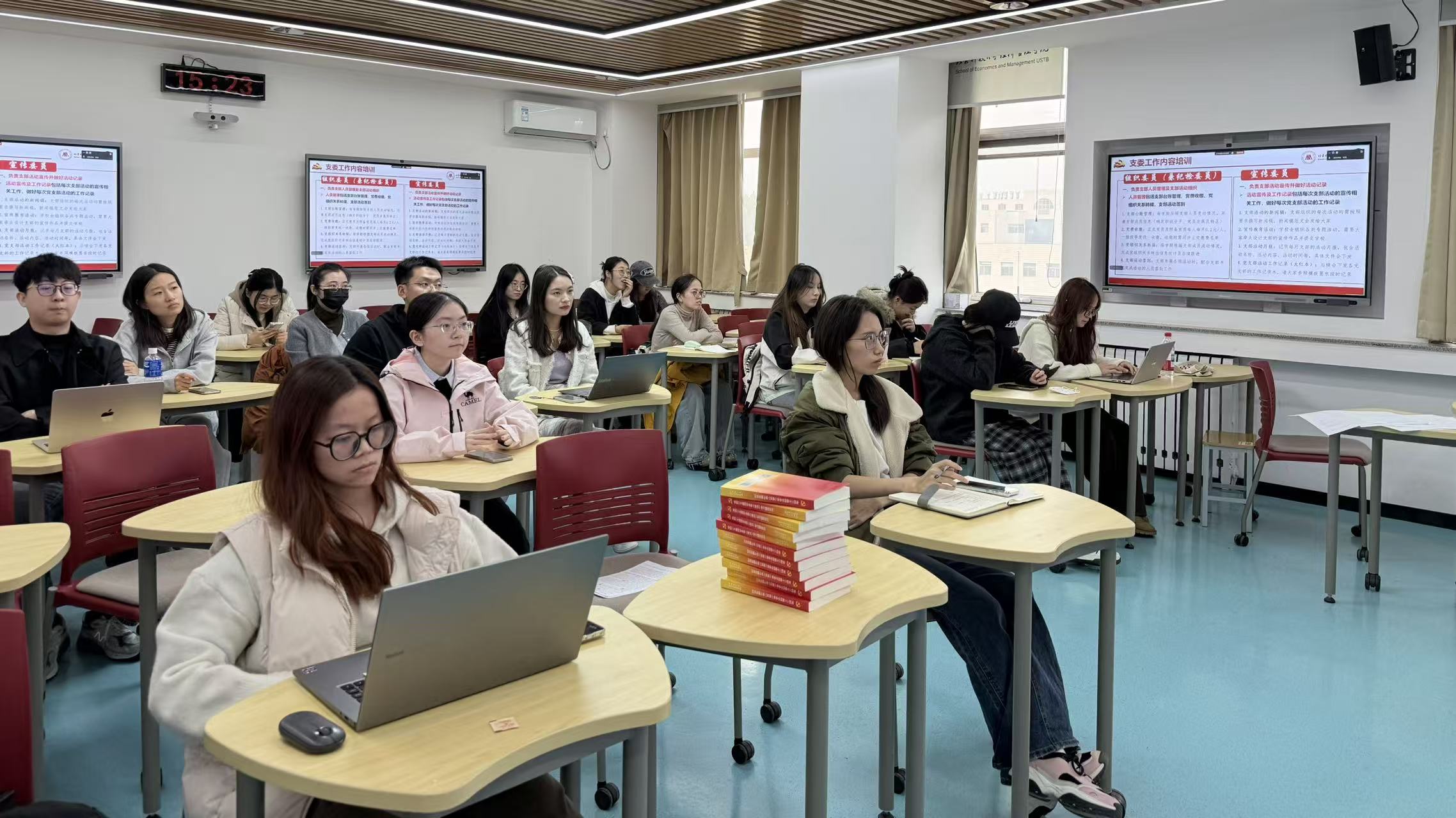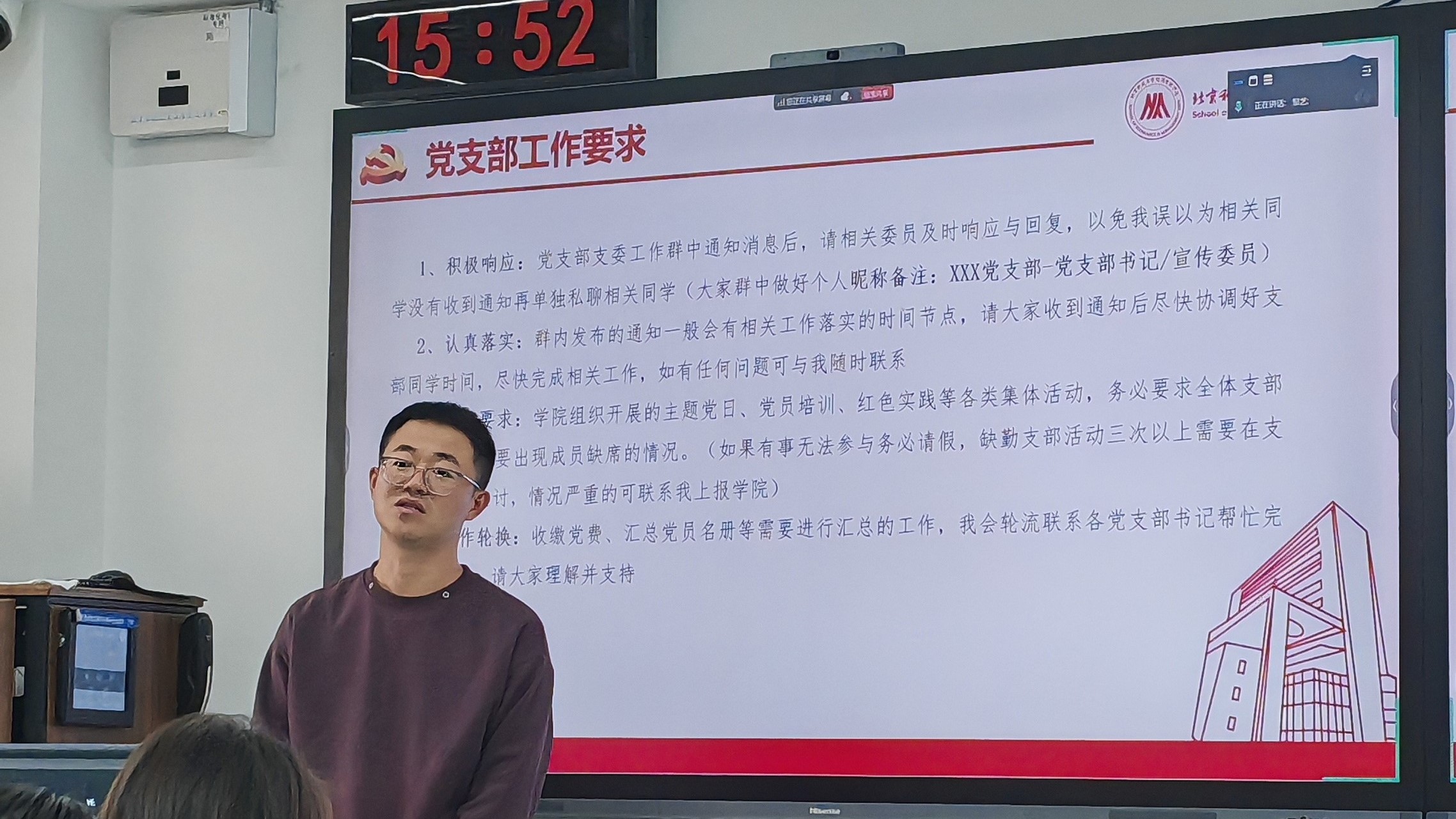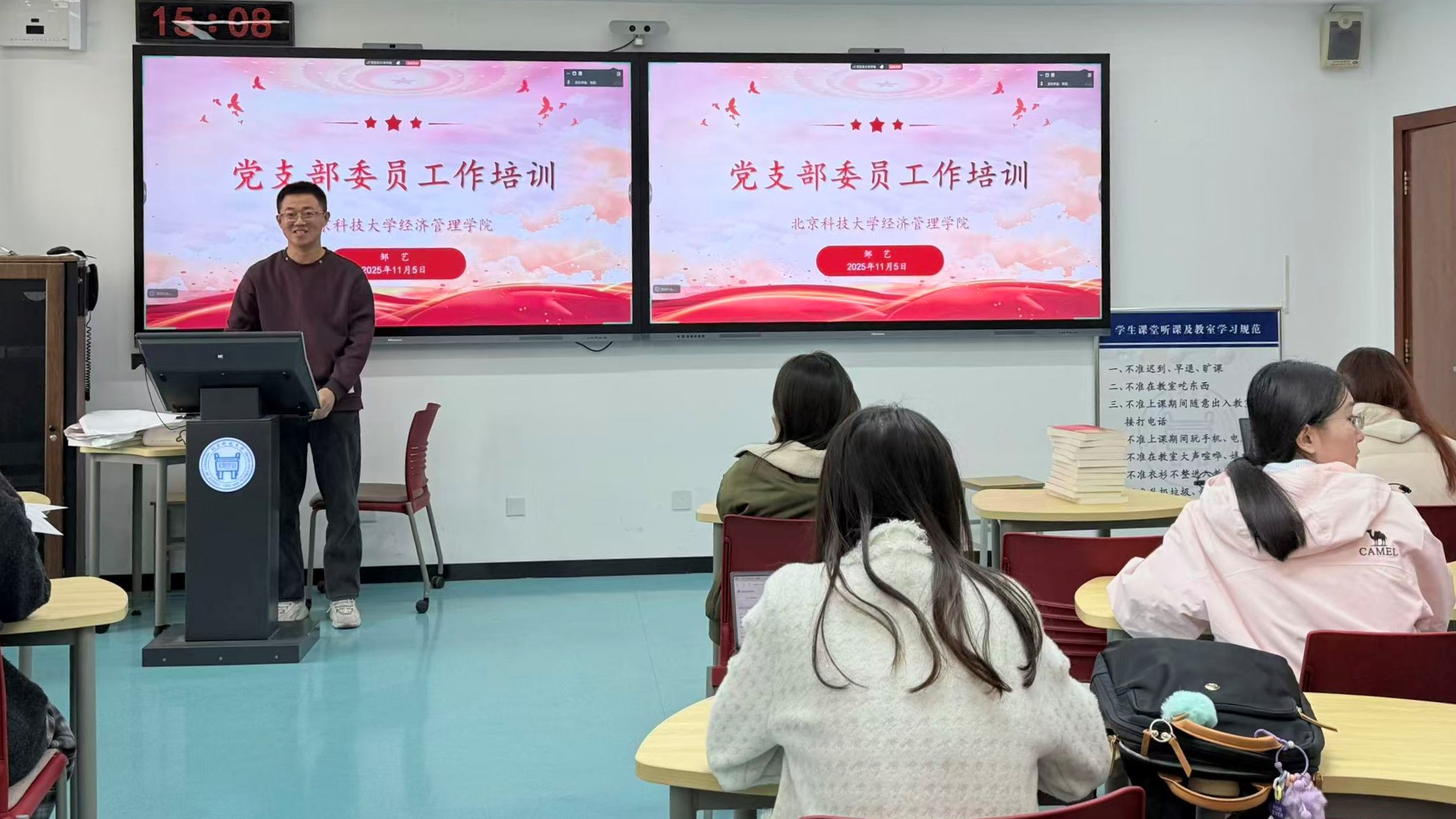 2025年11月5日15:00-16:30,beat365英国官方网站在经管楼507组织开展了硕博党支部委员工作培训。本次培训由学院辅导员邹艺主持,各硕博党支部书记、组织委员(兼纪检委员)、宣传委员等支部委员线下集中参加。