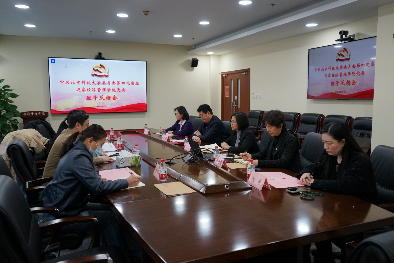 巡察反馈大会前,巡察办、巡察组在经管楼809会议室向学院主要负责人、学院班子进行了巡察情况反馈,反馈会由巡察工作办公室主任张俊燕主持。