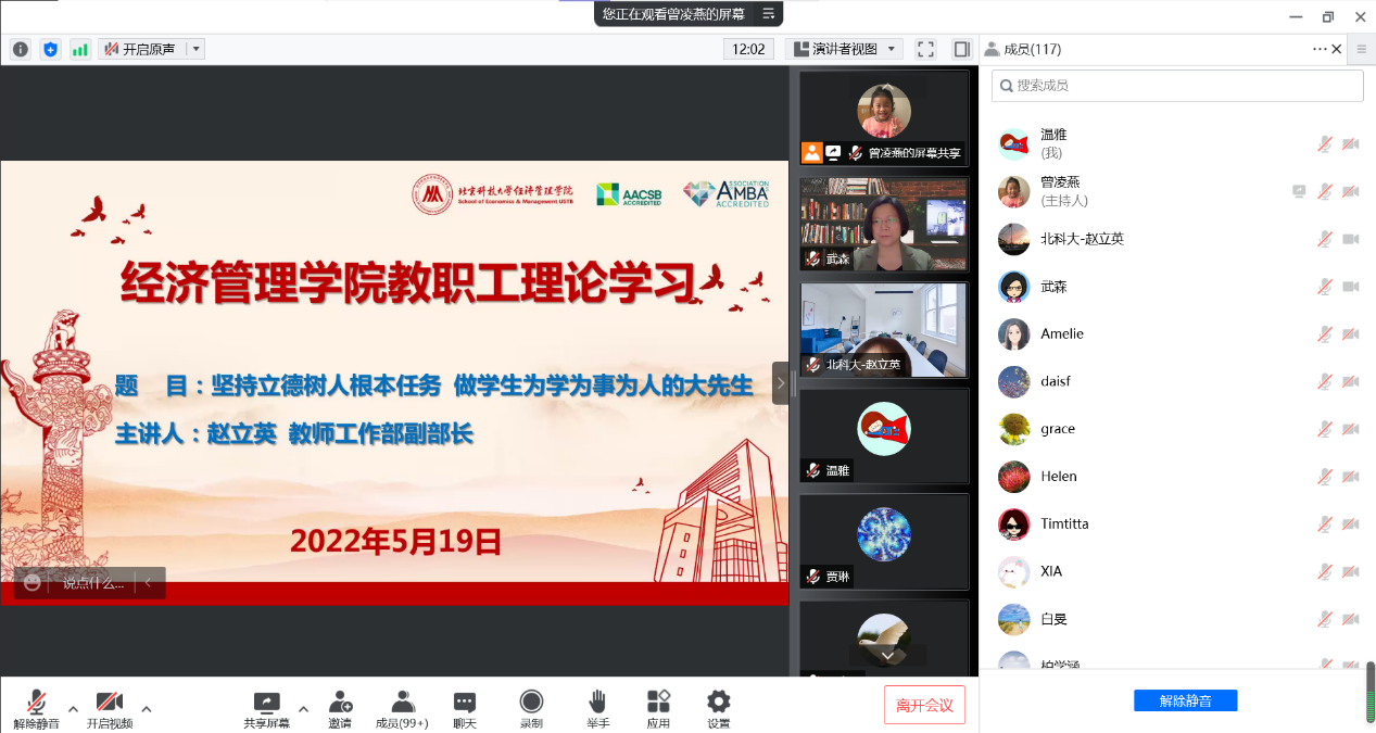为深入学习领会习近平总书记关于教师队伍建设的重要论述,进一步加强教师思想政治和师德师风工作,2022年5月19日下午,beat365英国官方网站组织开展全院教职工理论学习,邀请学校党委教师工作部副部长赵立英以《坚持立德树人根本任务做学生为学为事为人的大先生》为主题进行主讲。学院全体教职工在线上参加学习,会议由学院党委书记武森主持。