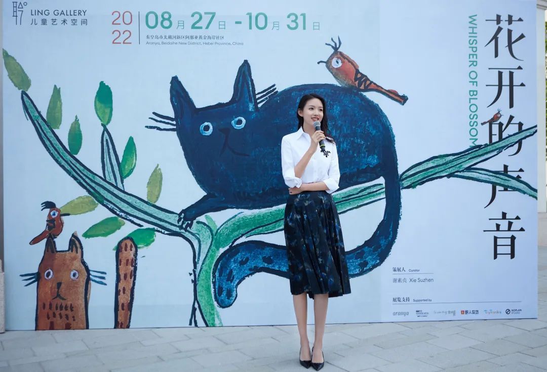 张梓琳的另一身份是画廊主理人,她在秦皇岛风景优美的阿那亚黄金海岸社区发起和主理了一间有点特殊的——“聆画廊”。店内整体以白色为主基调,整洁简约,将艺术与自然气息相结合,为观众打造一个可以驻足欣赏,悉心品味画作的静谧场所,“聆画廊”不仅关注国内外青年艺术家群体,还有固定展席留给特殊儿童群体,这些在画画中获得疗愈的小朋友们,有些在习作中就展现出惊人的天赋,这间画廊的初衷便是让更多人看到、了解他们和这些美丽的作品。张梓琳不希望大家仅仅是基于善意想要献出爱心,“更愿意我们的藏家是站在这幅作品前,真正被打动,真心喜欢这些画”,被看见,比售出更为重要。“他们需要的不仅仅是物质的支持,收入最终会通过公益机构回流到这些特殊家庭,但赞誉和认可对于特殊画手和他们的家人更为重要,也希望聆画廊是一扇小小的窗口,里面有你意想不到的绚烂风景”。