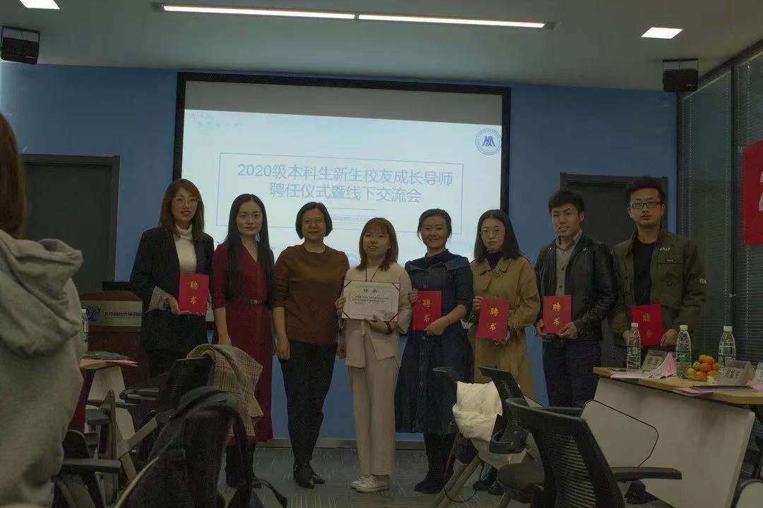 2020级本科生校友“新生成长导师” 聘任仪式暨工作座谈交流会于2020年10月24日上午九点半在beat365英国官方网站贝壳创空间举行。学院党委书记武森,党委副书记倪宇,公共关系办公室主任秦艺芳,2020级新生辅导员邹艺、王琳如,2020级两位新生代表以及9位校友出席了活动。