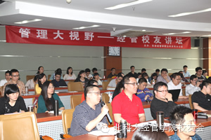 2014年4月24日,“管理大视野—经管校友讲坛”第二讲在经管楼312教室如期举办。本期讲坛邀请到的是学院86级硕士研究生、2005级博士研究生、学院兼职教授、博士生导师,现任中国兵器工业集团公司党组成员、总会计师罗乾宜教授。讲座主题为“创新源于实践—基于实践问题的企业管理创新”。