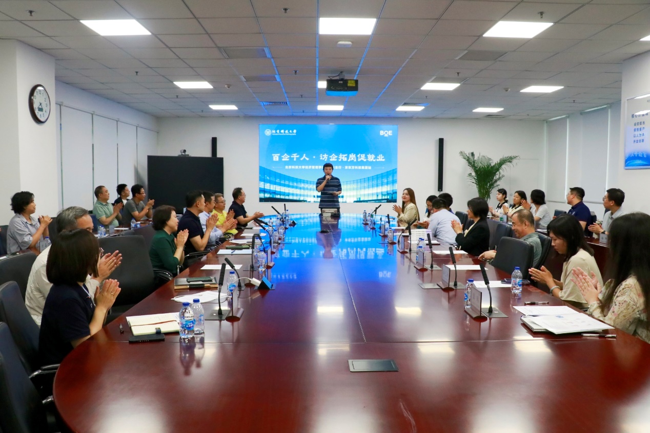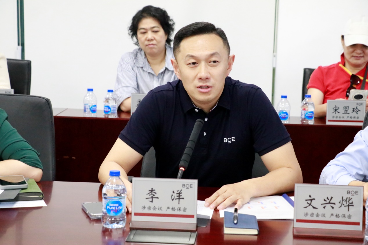 李洋在致辞中代表公司对经管学院师生校友到访京东方表示热烈欢迎,并介绍了京东方的发展历程。他表示,京东方和北科大在人才培养、实习就业等方面保持了紧密联系,多年来,北科大为京东方培养和输送了数百名优秀人才,其中多位校友已在公司担任重要岗位,在技术研发、管理创新等关键领域做出了突出贡献。