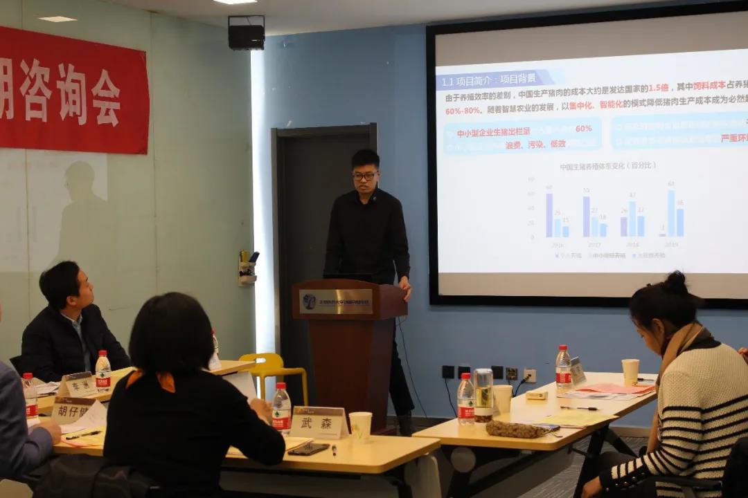 此次参加答辩的共有三支队伍,分别是Hops工作室北科“经管牛”文创,基于猪脸识别的自动投喂系统,IntelMining矿业智能科技综合服务平台。每个项目团队共23分钟时间,其中:项目演示:8分钟,主要以PPT演示和讲解组成,专家指导:15分钟。