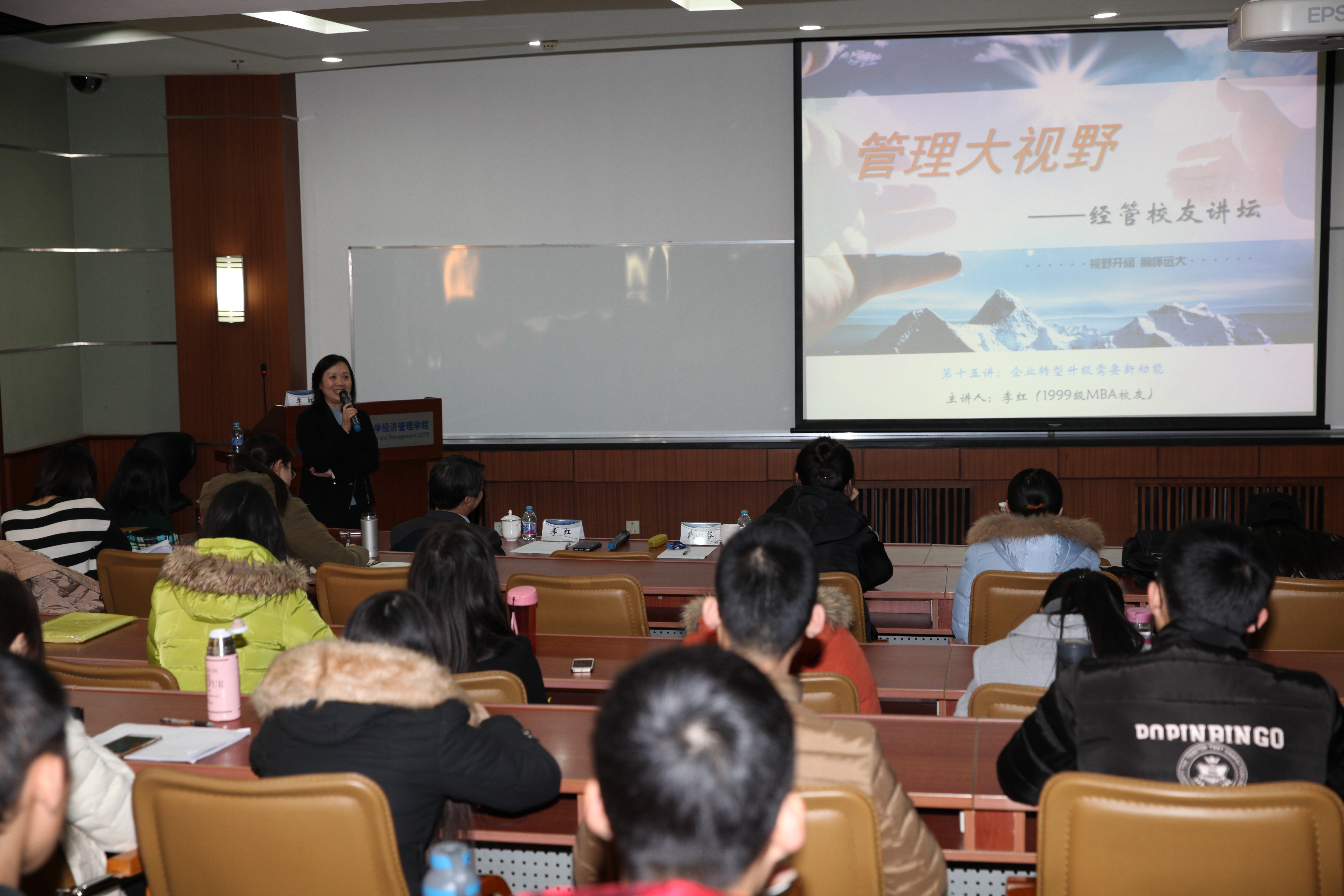 2016年11月23日,“管理大视野—经管校友讲坛”第十五讲在经管楼312教室举办。本期讲座主题为“传统企业转型升级需要利用新动能”,主讲嘉宾为我院MBA1999级校友李红。李红校友目前就职于中国中钢集团公司,任信息管理中心总经理。