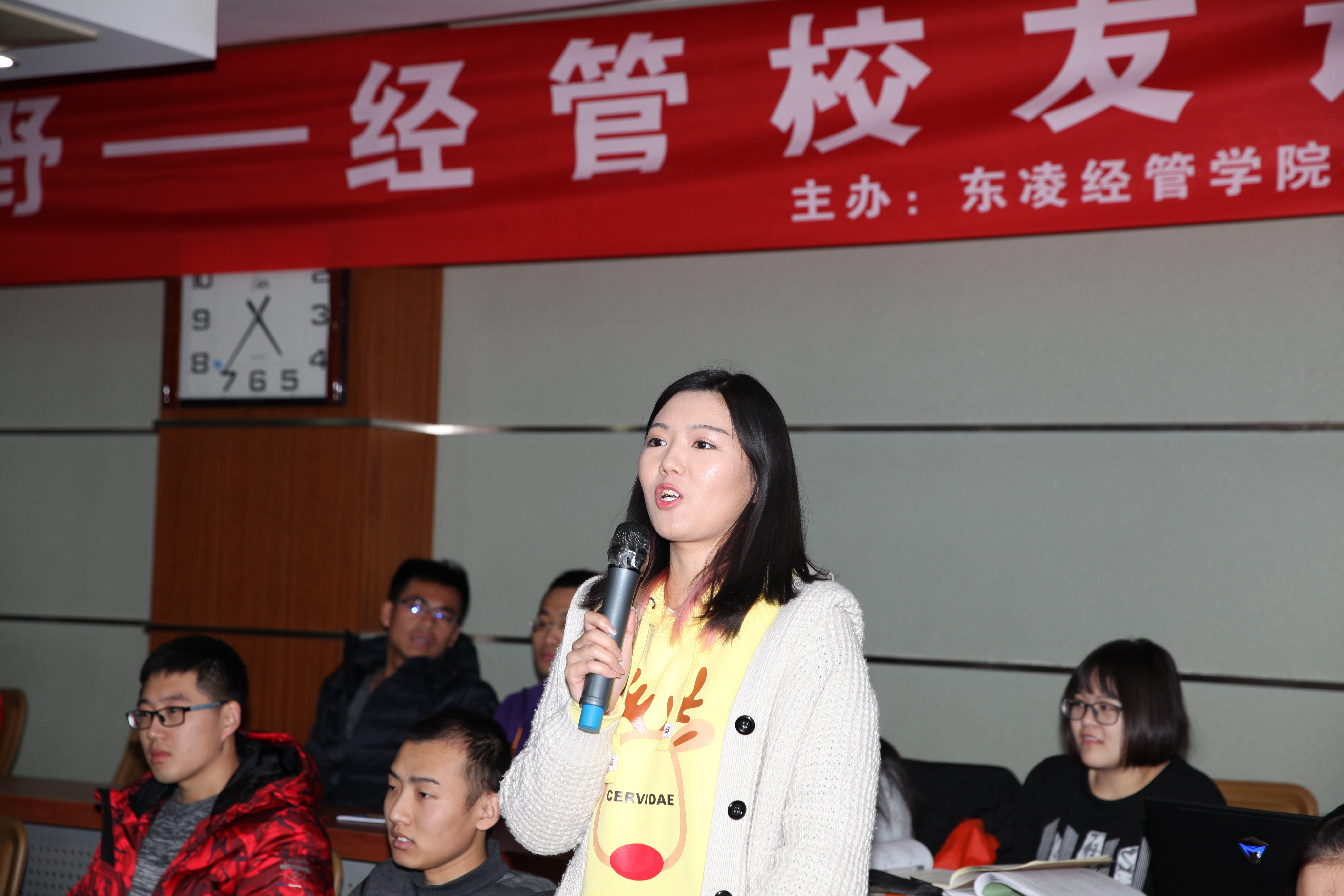 讲座后的提问环节,现场听众就“企业转型中上下游产业链的规划”、“战略转型中的关键点”与嘉宾进行了探讨。讲座最后,戴书记对校友的分享表示感谢并希望在场听众多关注校友讲座,多听相关经验,为未来的工作积累经验。 合影留念后,活动结束。