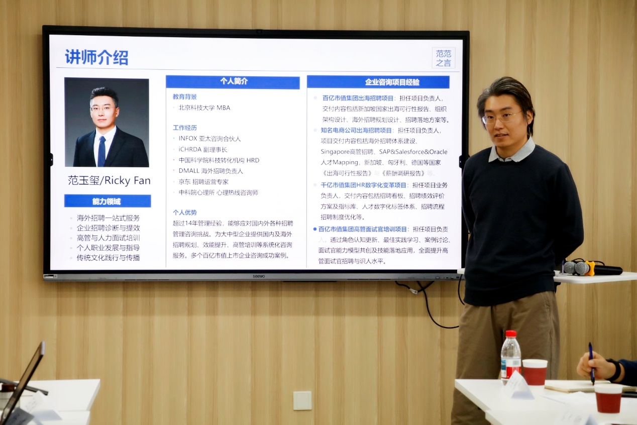 范玉玺校友的分享题目为《中企海外招聘趋势与挑战应对策略》。他系统剖析了中企出海的人才需求趋势与海外招聘面临的独特挑战,通过对比海内外招聘的核心差异,总结提炼出一套行之有效的海外招聘致胜策略,为校友们提供了宝贵的实践指南与深刻启发。
