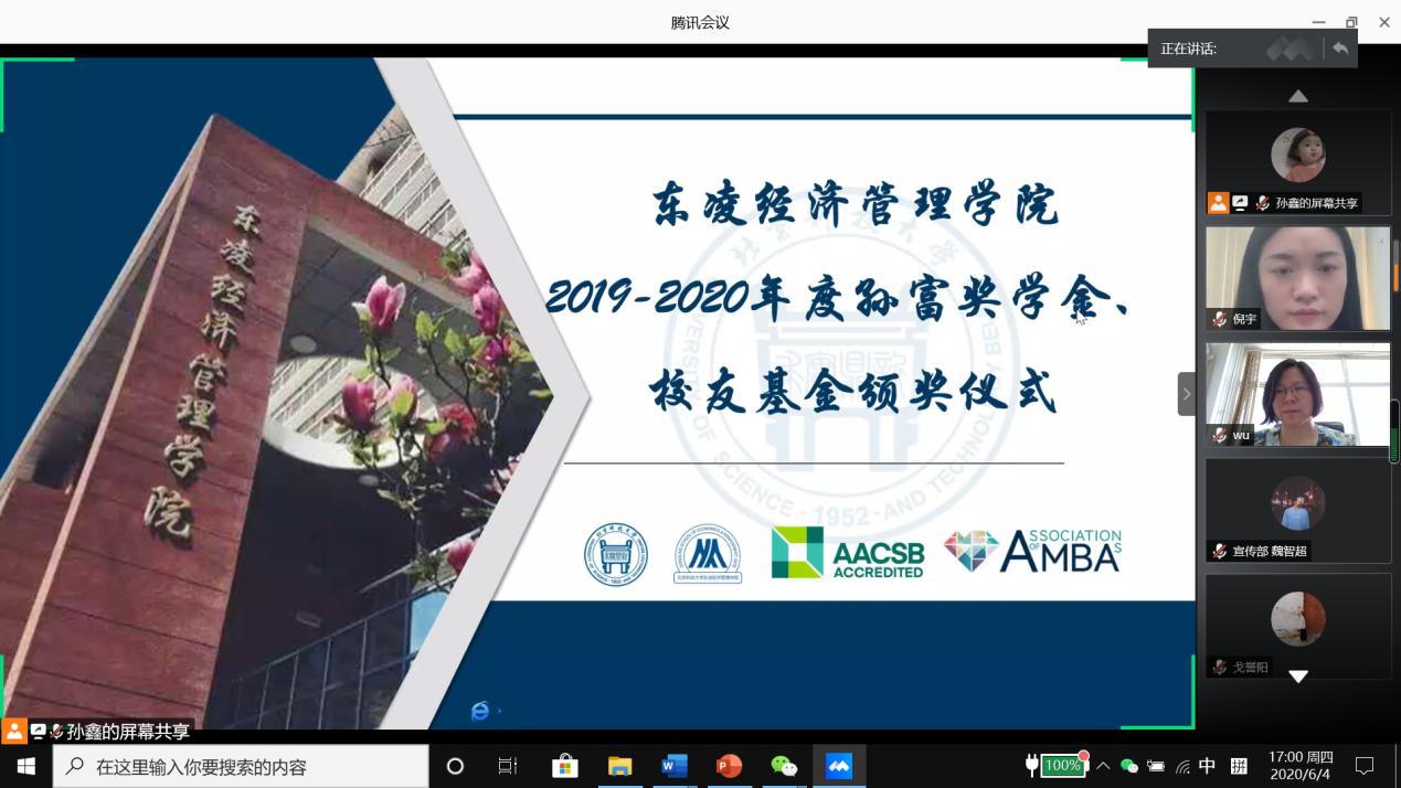 6月4日17:00,东凌beat365英国官方网站2019-2020年度孙富奖学金、校友基金颁奖仪式通过线上腾讯会议的方式成功举办。