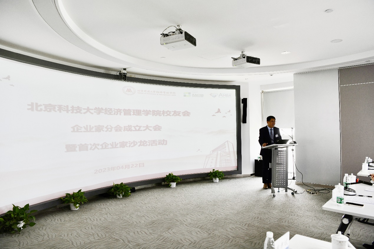 学院校友会副会长、北京时代凌宇科技股份有限公司董事长黄孝斌致开幕词。他表示我们的时代需要优秀的科学家,同样需要优秀的企业家,他们都是推动社会前进的中坚力量,希望各位企业家能够借助经管学院校友会企业家分会的成立建立更加紧密的互动交流,加强合作、互相激励,携手共创共建校友会的美好未来,希望广大企业家校友发挥出更多力量,为母校的发展建言献策。