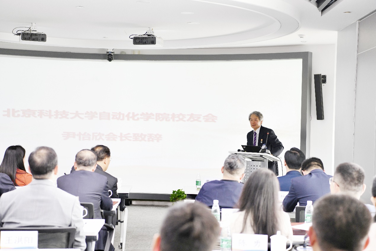 自动化学院校友会会长尹怡新代表兄弟分会致辞。他对企业家分会的成立表示祝贺,并表示自动化学院与经管学院渊源颇深,知识与人才互补能力强、发展关系密切,后续将进一步加强校友会之间的联系和互动,共同推动校友工作的高质量发展。