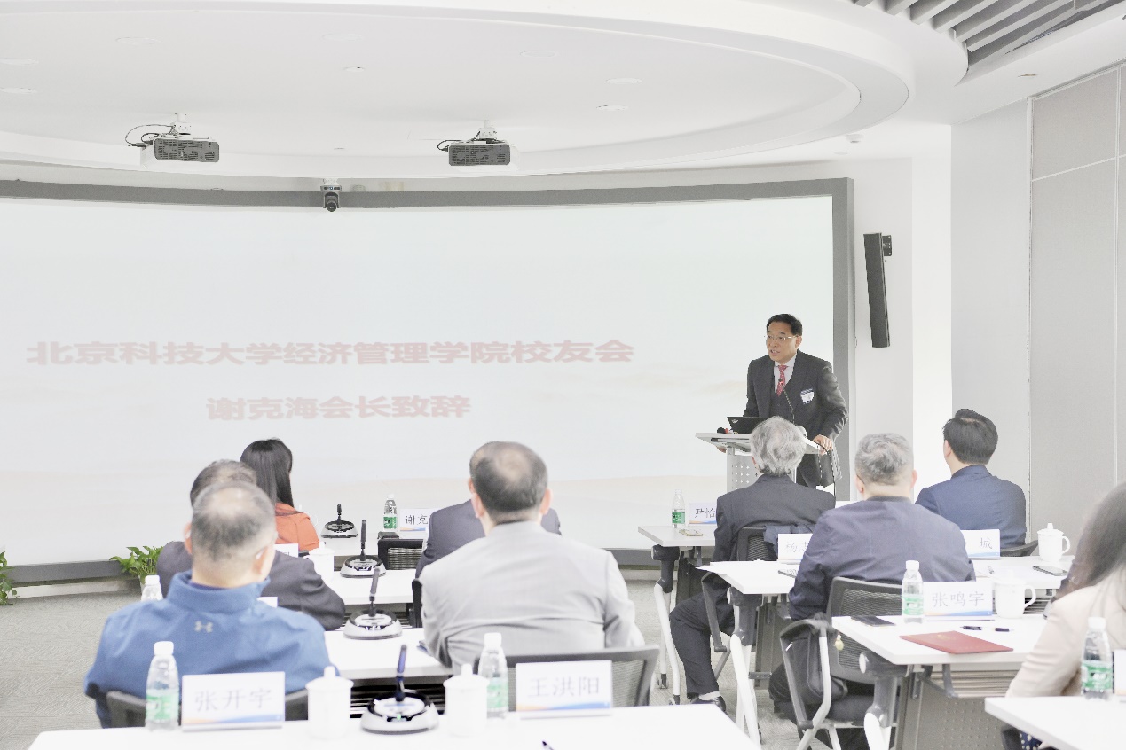 最后,经管学院校友会会长谢克海做总结发言。回望求学之路,共忆峥嵘岁月,他感谢学院对于企业家分会的大力支持。他表示,企业家分会要始终秉承为广大校友服务的宗旨,依靠学院和广大校友,凝心聚力开展工作,为构筑母校和校友之间的正向联系而努力,希望广大校友时刻情系经管,共筑成长之路。