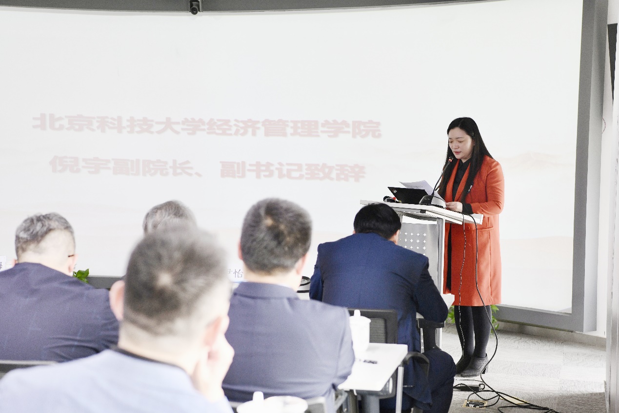 随后,经管学院党委副书记、副院长倪宇代表学院致辞。她对企业家分会的成立表示祝贺,对经管校友会的工作予以肯定,并向参会校友介绍了学院近年来的发展历程和所取得的成绩。她指出,校友是母校宝贵的财富,企业家分会成立后,将有利于进一步密切学院和校友之间的联系,为学院的发展、校友的成长做出积极的贡献。