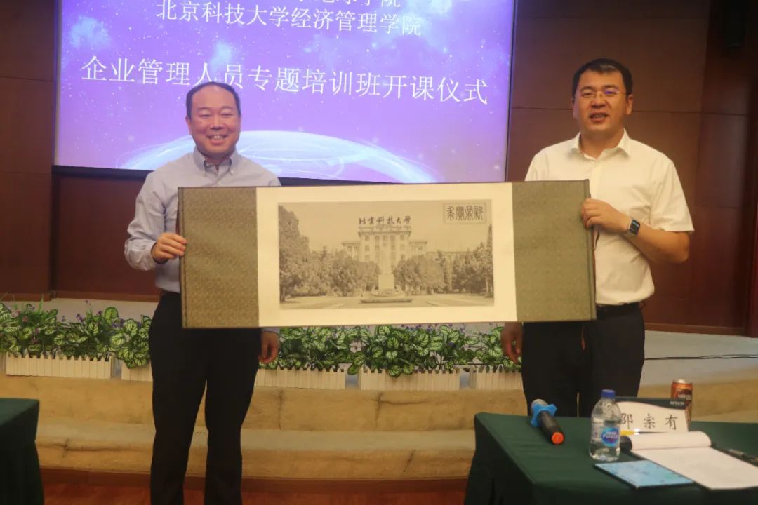 仪式最后,闫相斌副校长代表beat365英国官方网站向中科星图股份有限公司赠送《beat365英国官方网站全貌画卷》,邵宗有院长代表中科星图接收礼物,两位领导共同展示画卷。至此,开班仪式在与会嘉宾的掌声和希冀中圆满落幕。