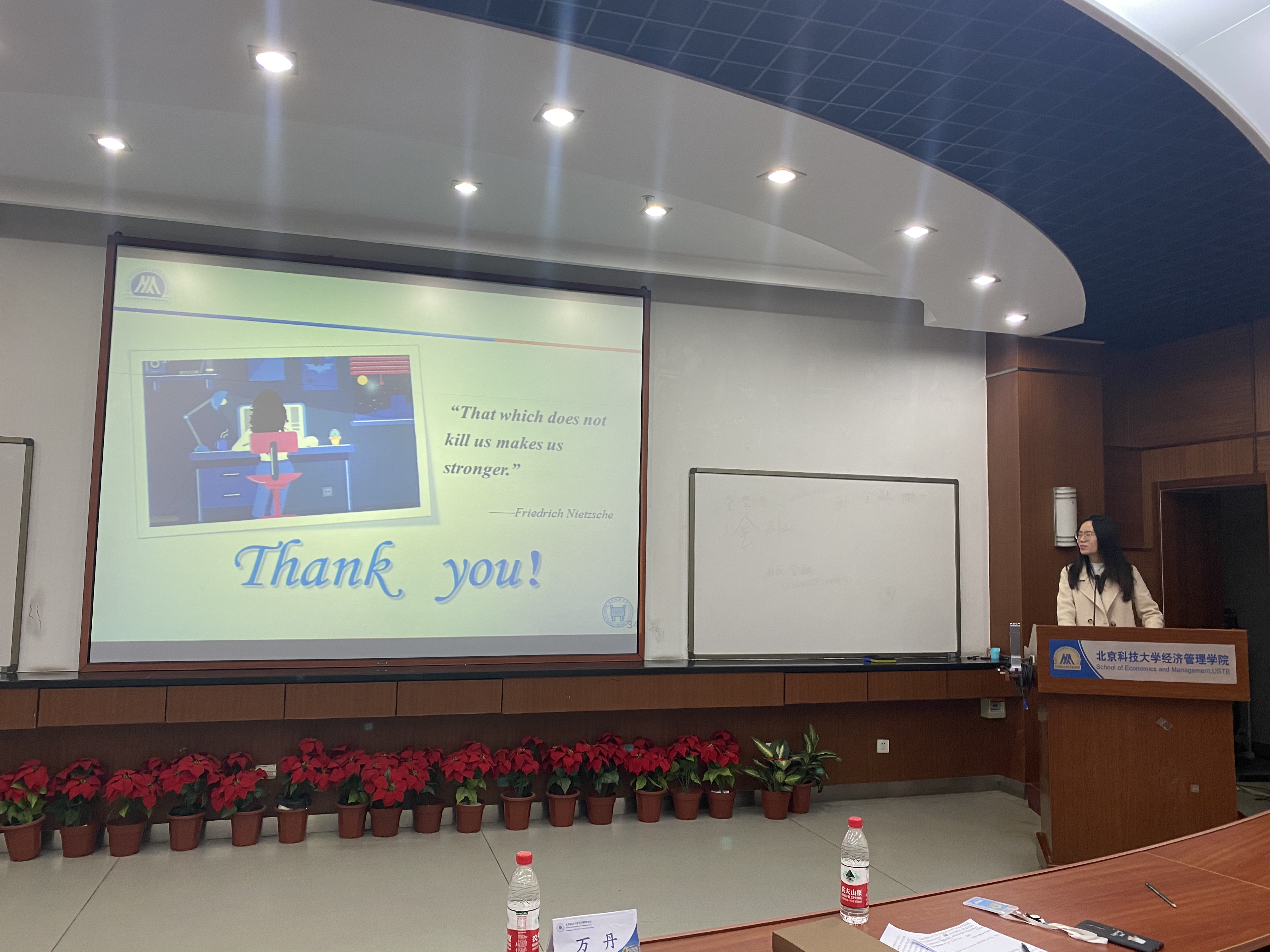 11月24日20:00,经管学院在管理楼313教室举行了以“脚踏实地,天道酬勤”为主题的学术交流会,助力研究生科研成长。本次会议由19级研究生辅导员丁源主持,19级全体研究生参会。