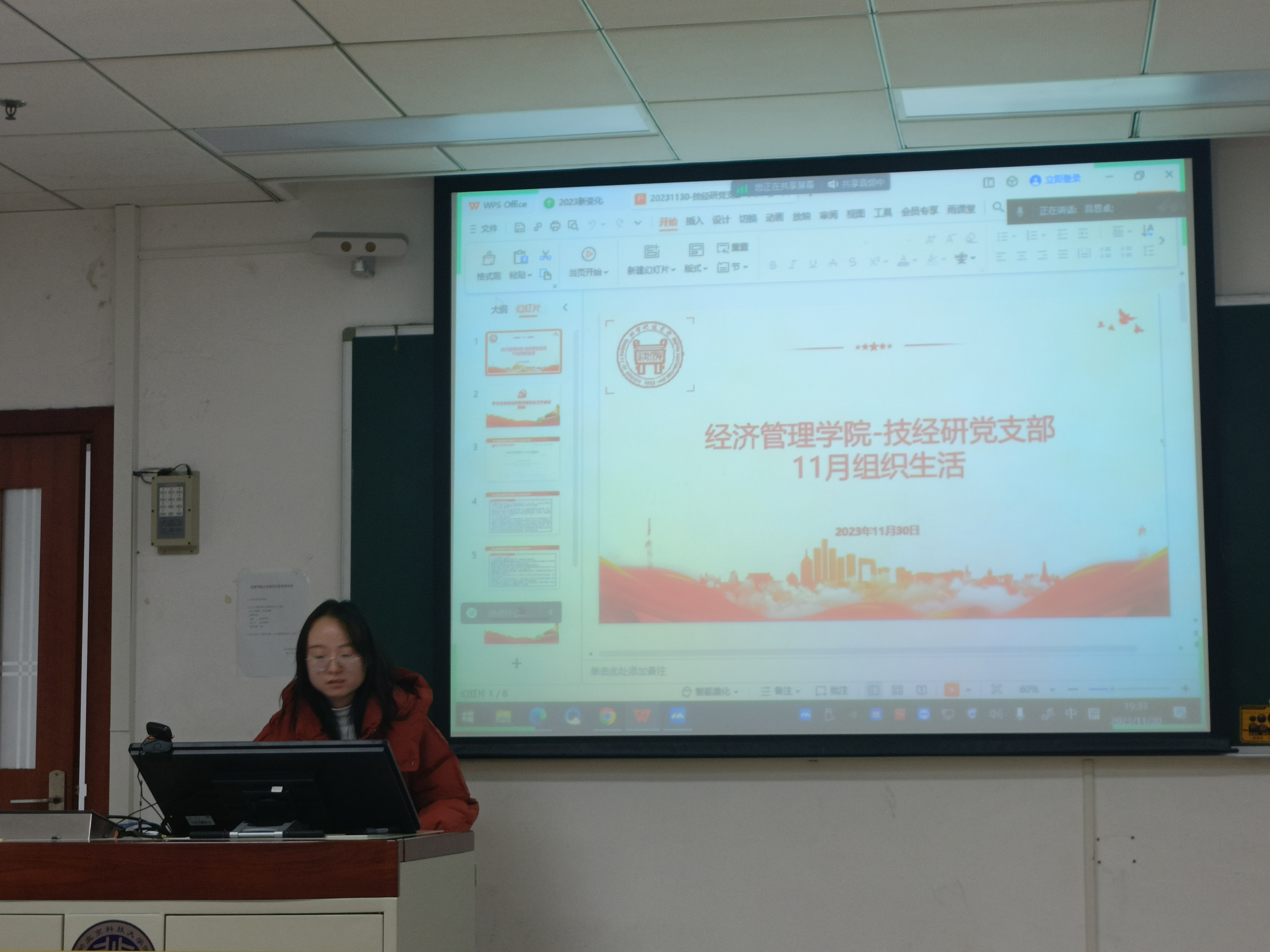2023年11月30日19:30,beat365英国官方网站技经研党支部顺利开展11月组织生活。本次组织生活于beat365英国官方网站经管楼510举行,共有25人参与,其中正式党员17人,预备党员2人,积极分子6人。本次组织生活由技经研党支部书记吕思卓同志主讲。