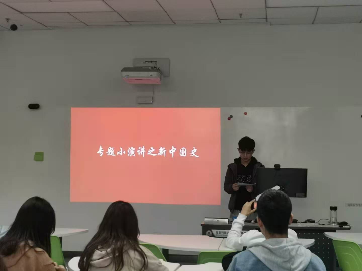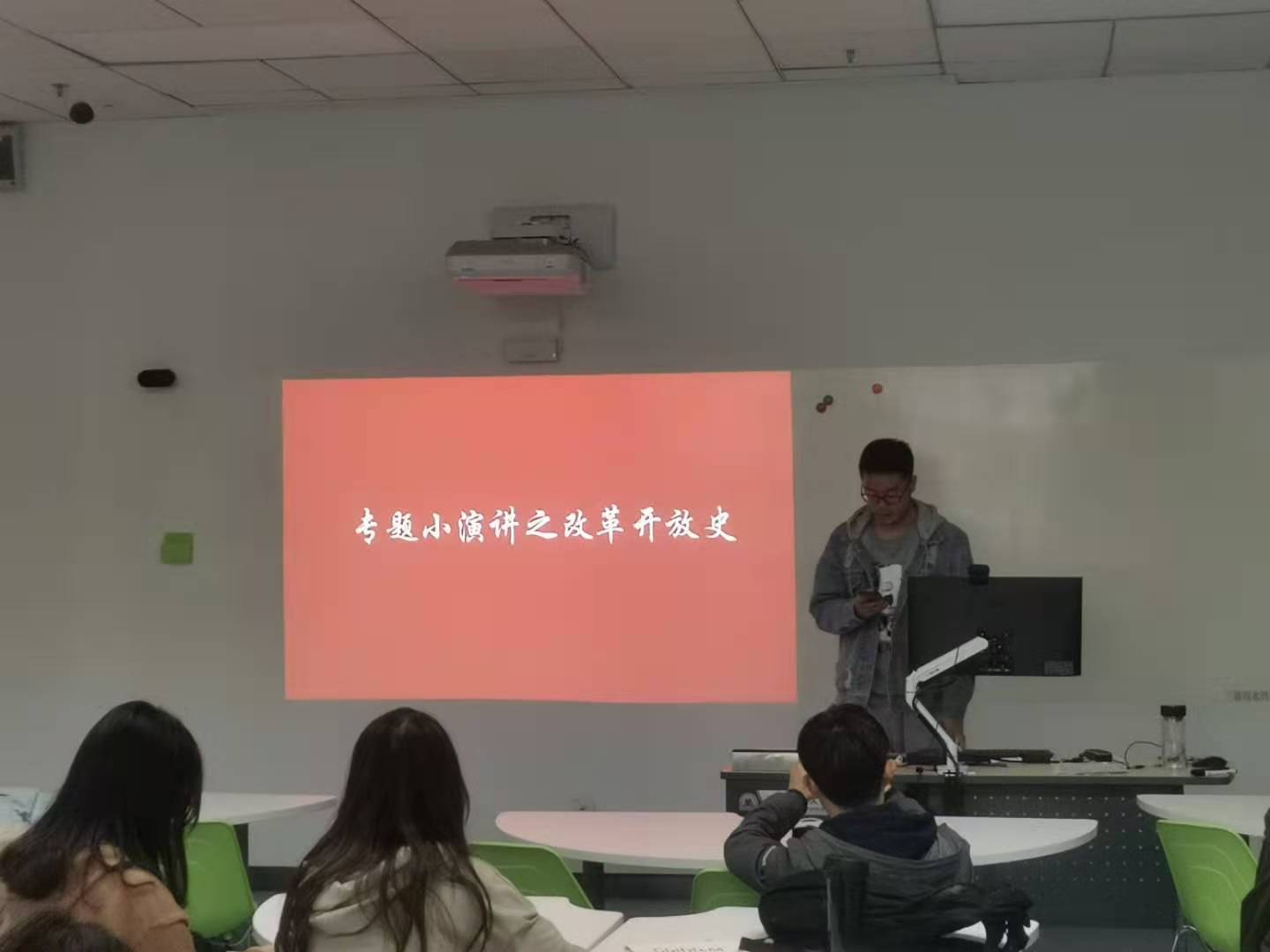 接下来是中国共产党史,新中国史,改革开放史,新中国史,社会发展史的专题演讲。专题小演讲之党史由陈晓瑶同学进行,我们在关注着国家实事的情况下也不可以忘记党的历史,“四史”的学习可以提高我们的党性修养,同时能够有助于在今后学习过程中不断总结经验,不断增强学习的主动性,以及最终提高自我能力。。新中国史由赵奥奇同学进行,在实现中国梦的过程中有三条路径,分别是必须走中国道路,弘扬中国精神,凝聚中国力量,同时实现中国梦,时不我待,不能觉得与自己无关,只去依靠党和国家,个人奋斗不能少,个人始终是一个集体的基础,每个人只有不断地奋斗,去实现自己的小梦,才能实现大梦,从而实现中国梦。改革开放史演讲由丰硕同学进行,改革开放是中华民族发展史上一次伟大革命,推动了中国特色社会主义事业的伟大飞跃,改革开放是我们党的一次伟大觉醒,正是这个伟大觉醒孕育了我们党从理论到实践的伟大创造。社会主义发展史则由张馨钰同学进行演讲,社会主义改变了中国的命运,中国也改变了社会主义的命运,作为青年的我们要用自己的青春热血去点墨中国,用自己一点一滴的行动去创造中国。以青春之我成就青春之中国。
