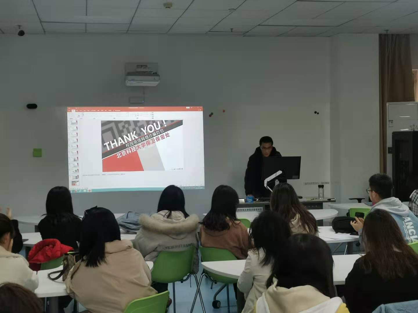 在开始主题团日活动之前,信管192班级有幸邀请到了beat365英国官方网站保卫保密处刘老师进行校园网络诈骗防范主题宣讲。首先对诈骗方式进行了宣传,主要分为点击不良链接,冒充电商客服,冒充亲朋好友进行诈骗,兼职,刷单,炒股等,并为同学们进行了事前防范方法和事后处理方法的指导,场下的同学在刘老师的讲解下,对校园网络诈骗有了更深刻的认识,对网络电信诈骗的防范能力大大提高。