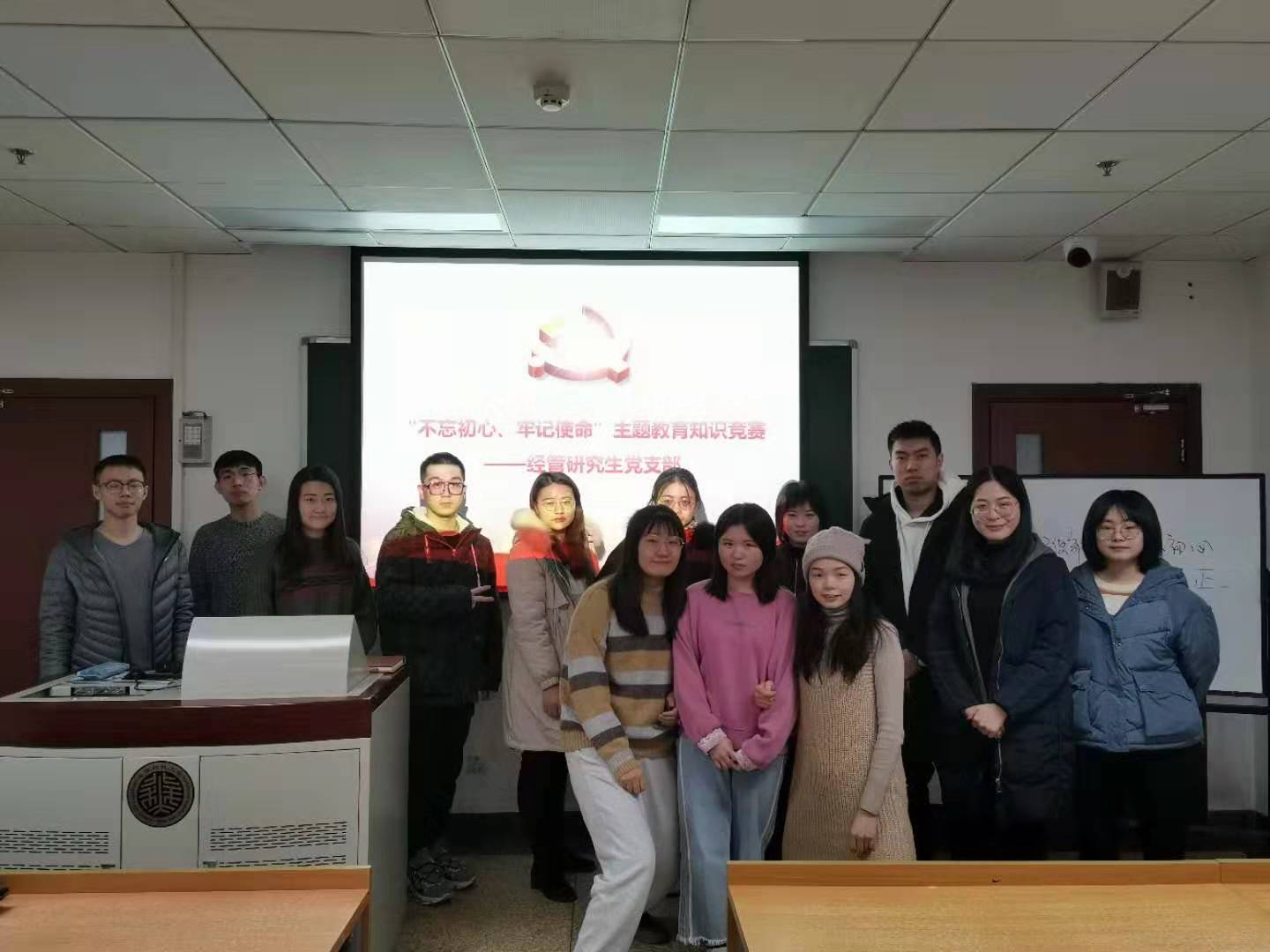 为深入推进“不忘初心、牢记使命”主题教育,12月30日下午3点30分,企管研19党支部于管楼504教室开展了“不忘初心、牢记使命”主题教育知识竞赛。竞赛由李响老师主持,主要包括习近平新时代中国特色社会主义思想、党的十九大精神、党章党规、主题教育“应知应会”、党务知识等相关内容。