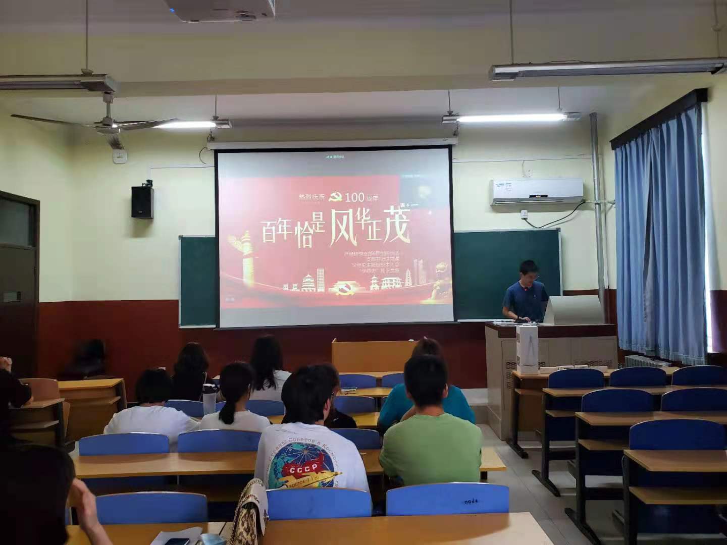 大会第一项,支部书记讲党课。恰逢建党百年,本次党课的主题即为《百年恰是风华正茂》。支部书记宋翔宇通过党的十九次全国代表大会对党史进行梳理,讲述了中国共产党筚路蓝缕、艰苦奋斗的百年征程,讲述了中国共产党为中国人民谋幸福、为中华民族谋复兴的初心使命。如今我们的幸福生活得之不易,要珍惜当下。未来更美好的中国需要我们接续奋斗,要投身未来。