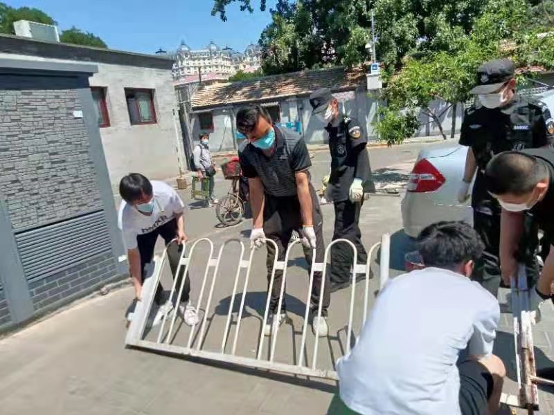 活动伊始,西总布社区志愿活动负责人介绍今日志愿活动内容, 接着社区活动负责人为大家分发清扫工具,并进行活动分工,经管本科18级工商类党支部的同学分为男生小组和女生小组两个小组,分别由西总布社区党委同志带领开展活动,为了维护了社区的交通秩序并改善社区居民的卫生秩序,男生小组负责协同社区工作人员拆卸和搬运社区内路障围栏以及帮助社区老人搬运门前堆放物,使社区的道路更加通畅,疏通社区的交通路径。