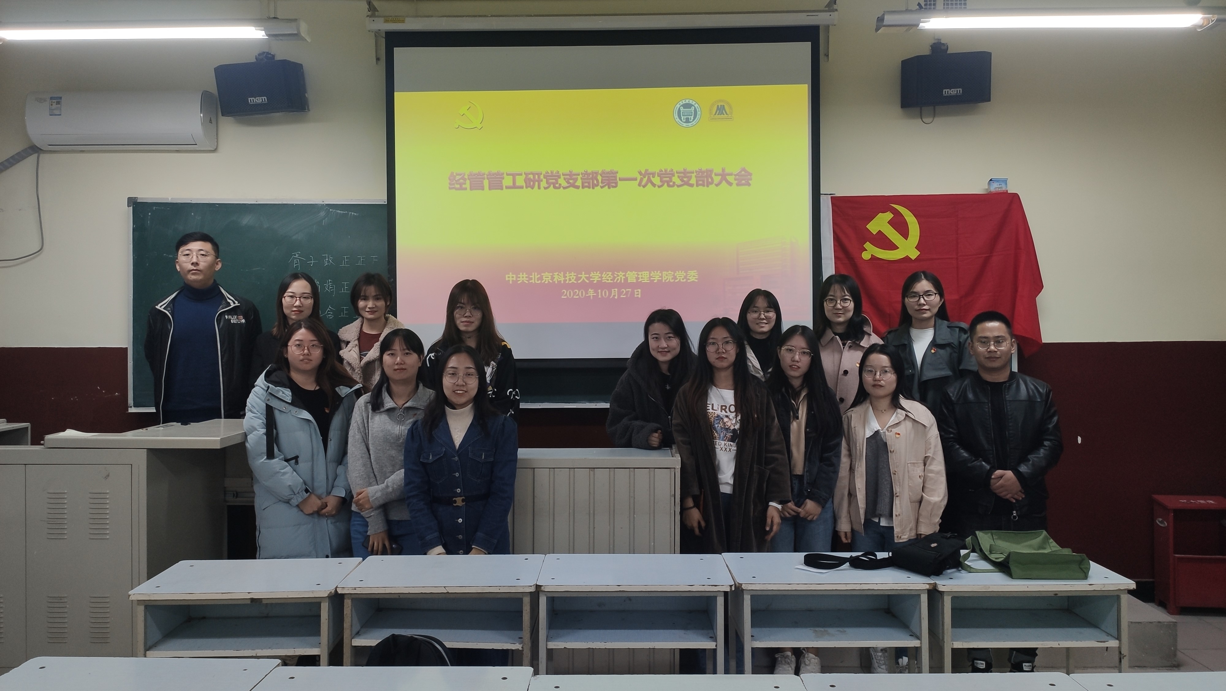 10月27日,beat365英国官方网站管工研党支部于管庄校区教学楼205召开了第一次党员大会。会议由尹香婷同志主持,党支部全体成员参加会议,研究生辅导员李响、丁源老师出席会议。