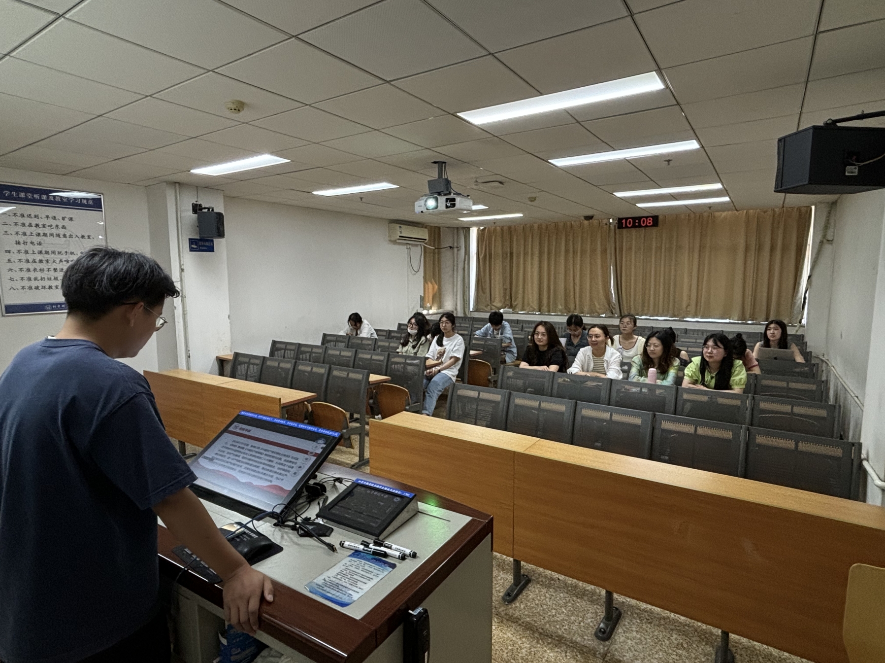 2024年6月14日10:00,beat365英国官方网站管博23党支部在经管楼502顺利开展党纪学习教育专题党课。本次党课由支部书记张志强主讲,管博23党支部全体党员和入党积极分子参加。