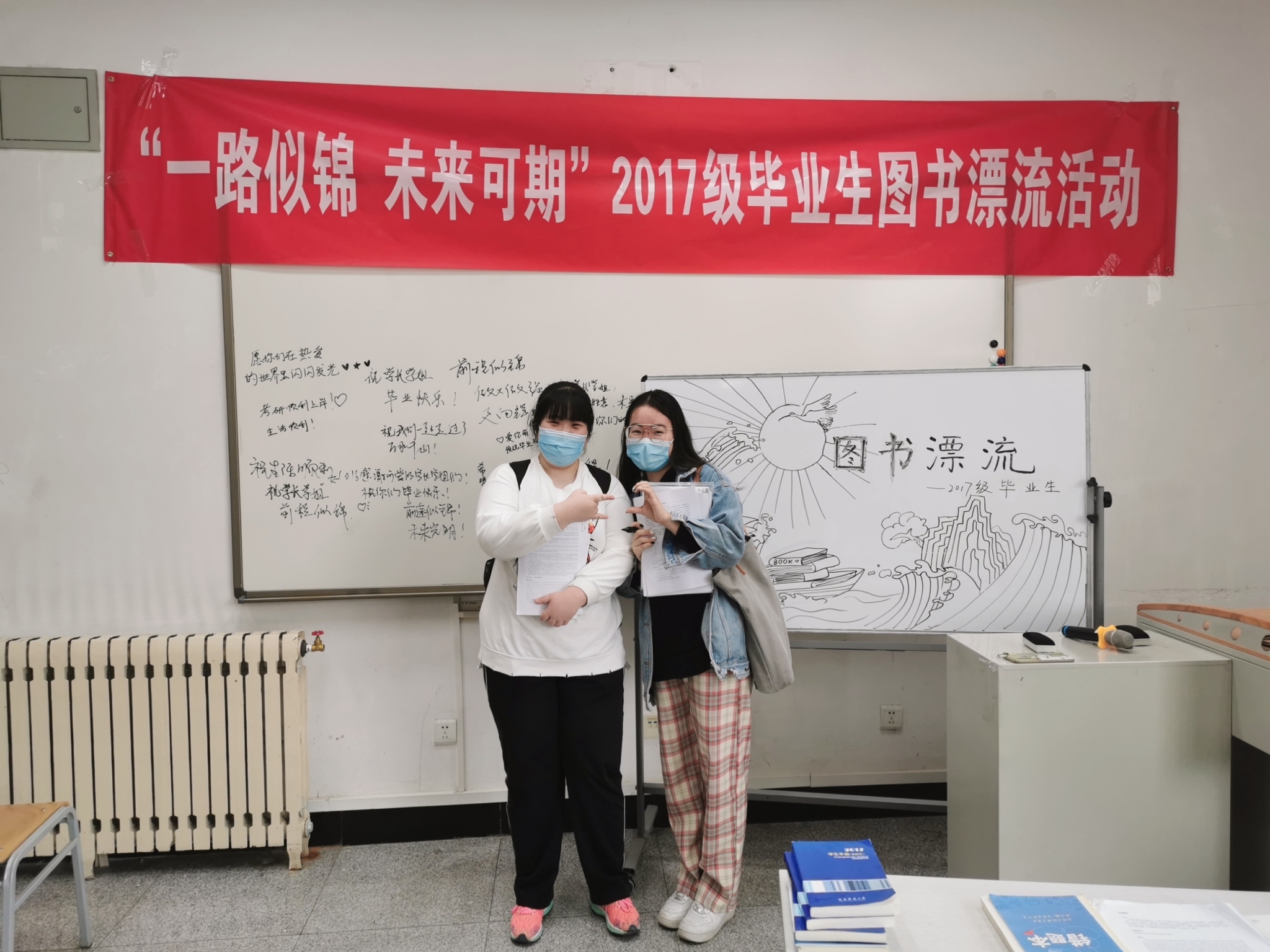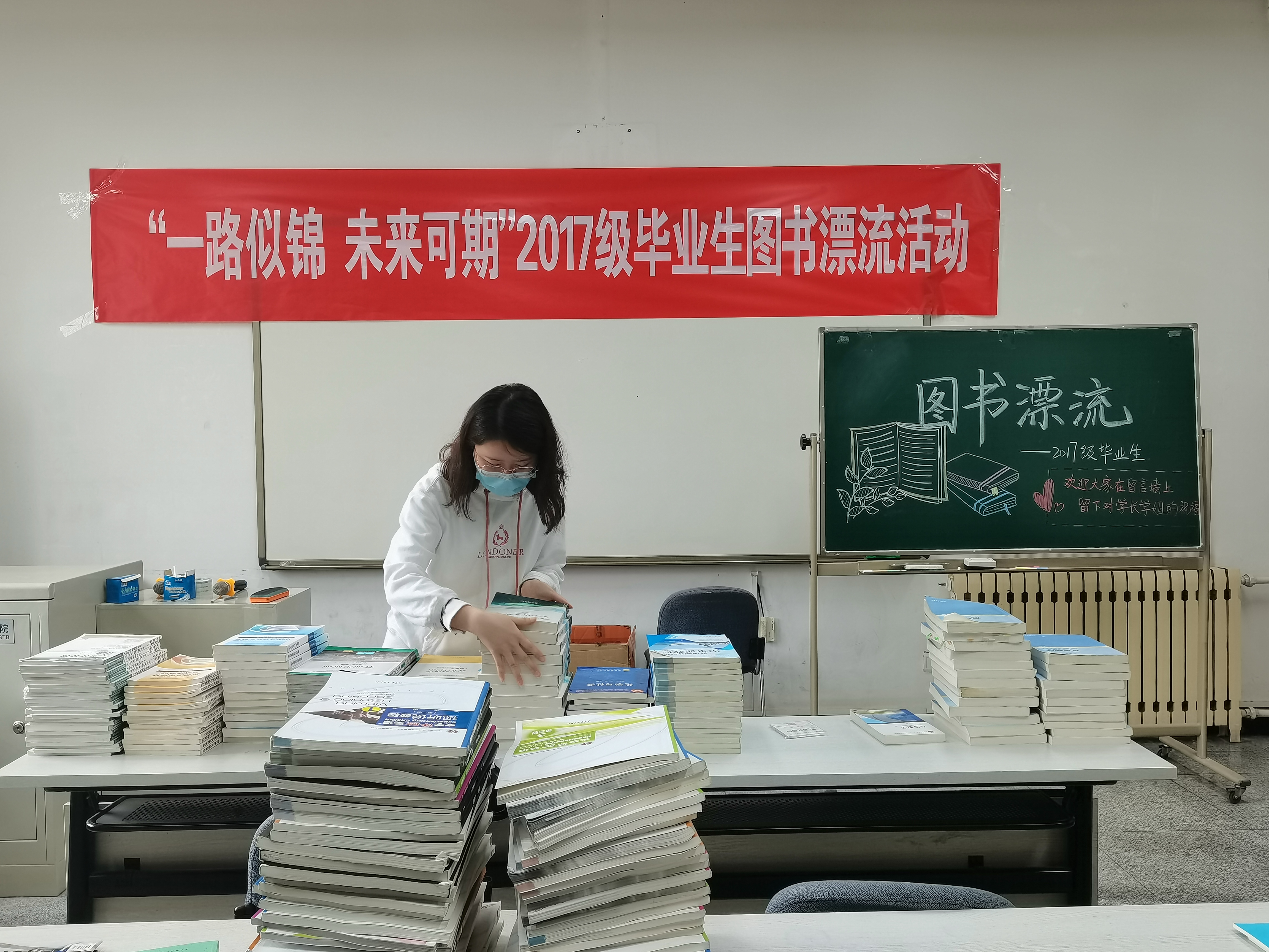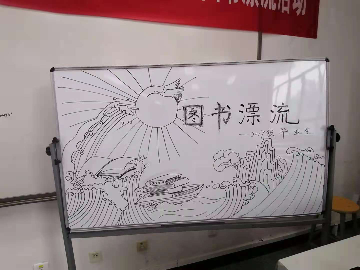 4月25日,beat365英国官方网站于经管楼301和310成功举办了以“一路似锦,未来可期”为主题的2017级毕业生图书漂流活动。为确保活动的顺利开展,2017级毕业工作组进行了为期一周进行活动预热,即对2017级经管准毕业生提出捐书倡议,以上门回收的方式进行旧书收集。活动前夕,毕业工作组成员将已回收的书整齐的摆放在经管楼301和310,并绘制了可爱的插画。