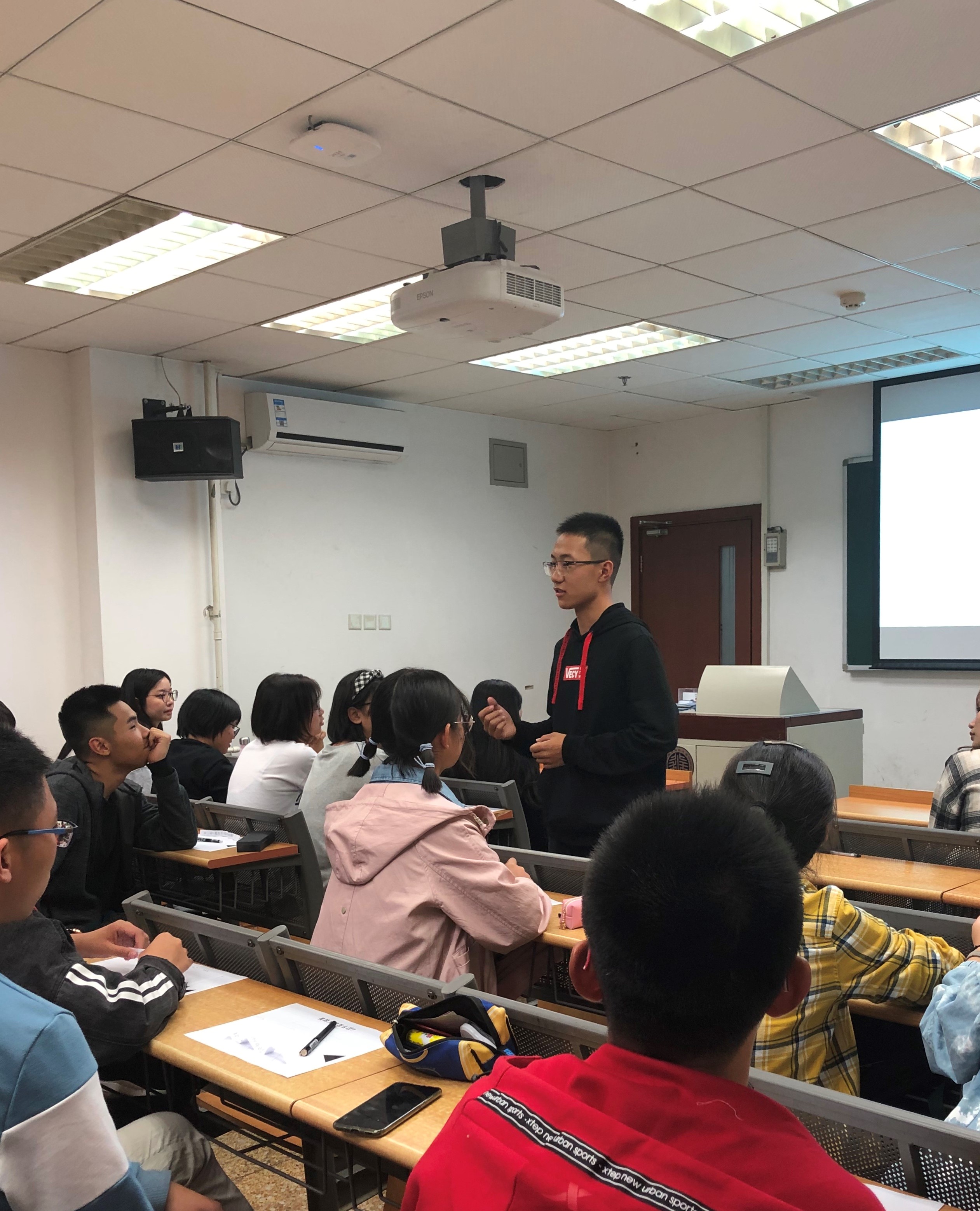 紧接着,倪宇老师与同学们进行了交流。她围绕“你想要什么?你准备好要什么了吗?”这两个问题展开了探讨。结合前几届毕业生的真实故事,倪宇希望同学们能吸取教训,吸收经验,平衡好知识、学位、锻炼、空间的时间分配,利用好大学这个平台,为自己的大学树立一个明确的目标并为此制定具体的计划,朝着这个方向不断努力。