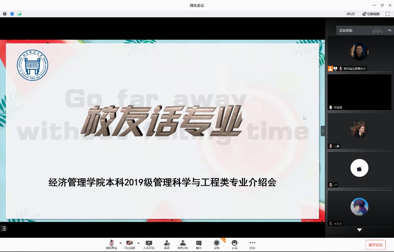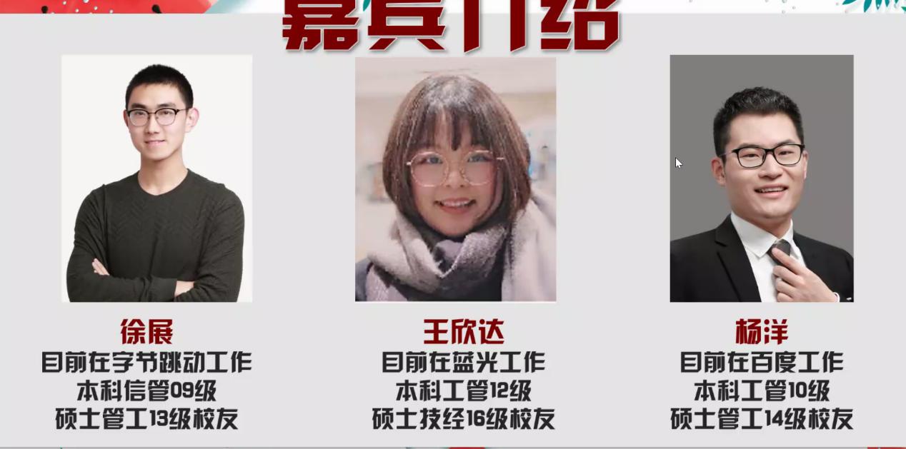 8月24日,beat365英国官方网站2019级管理科学与工程类专业介绍会于线上召开,会议由经管学院辅导员张洪榛主持,徐展校友,王欣达校友,杨洋校友受邀参加分享,2019级管理科学与工程大类学生及部分家长参会。