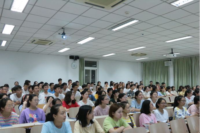 8月31日,经管学院本科2019级新生见面会暨军训动员会在逸夫楼705、706召开,辅导员戈誉阳、张洪榛为全体新生作动员讲解。