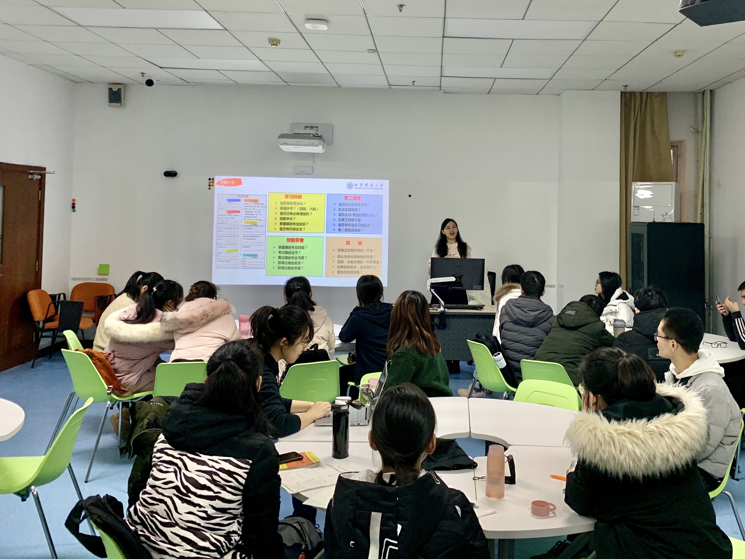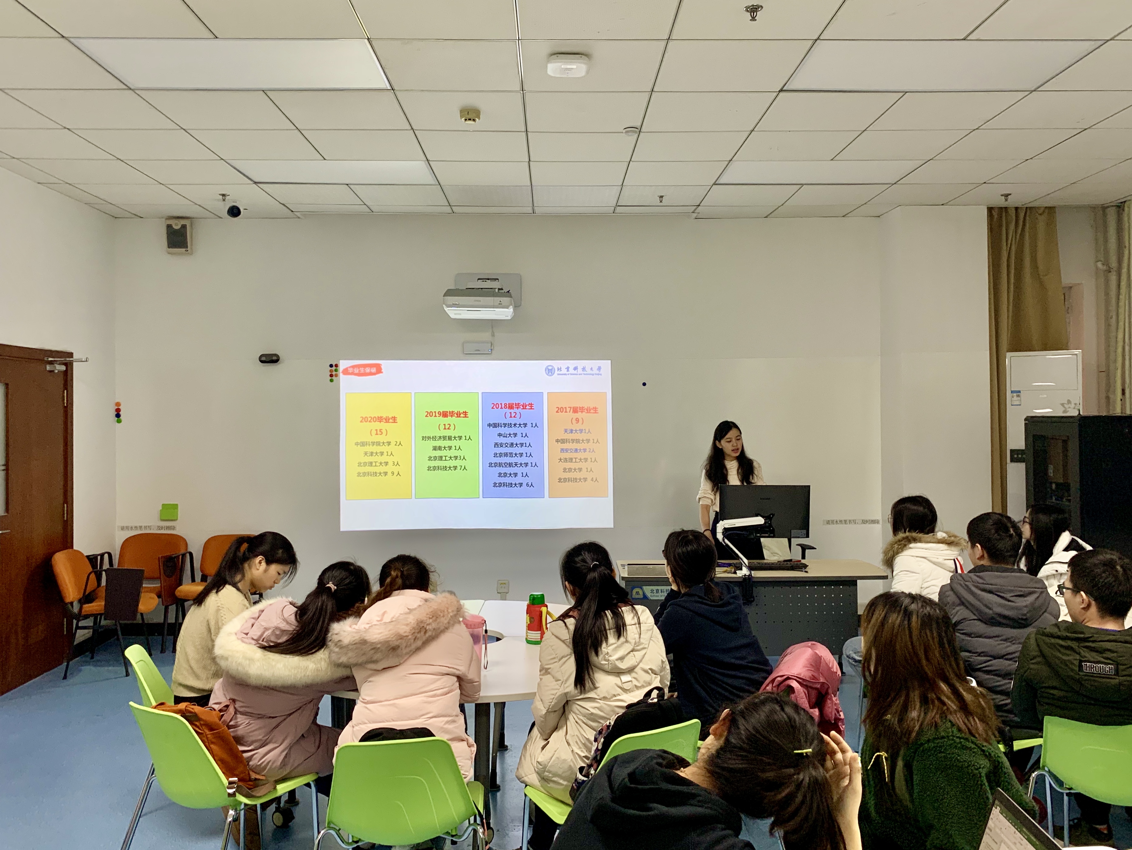 2019年已接近尾声,本科17级同学也即将结束自己大三上学期的学习生活。刘璐老师带领大家在这个关键时期回顾自己已经走过的大学生涯,引导同学们回顾与整理自己本科阶段在学习科研、第二课堂、技能荣誉、个人发展上的收获,思考“你做过的最特别的一件事”与“你认为你所具有的优势”,做好未来规划。为了帮助同学们更好地结合自身实际情况选择适合的发展方向,刘璐老师介绍了近四年经管毕业生保研、考研、出国、就业的去向,为大家个人规划提供了客观的参考。