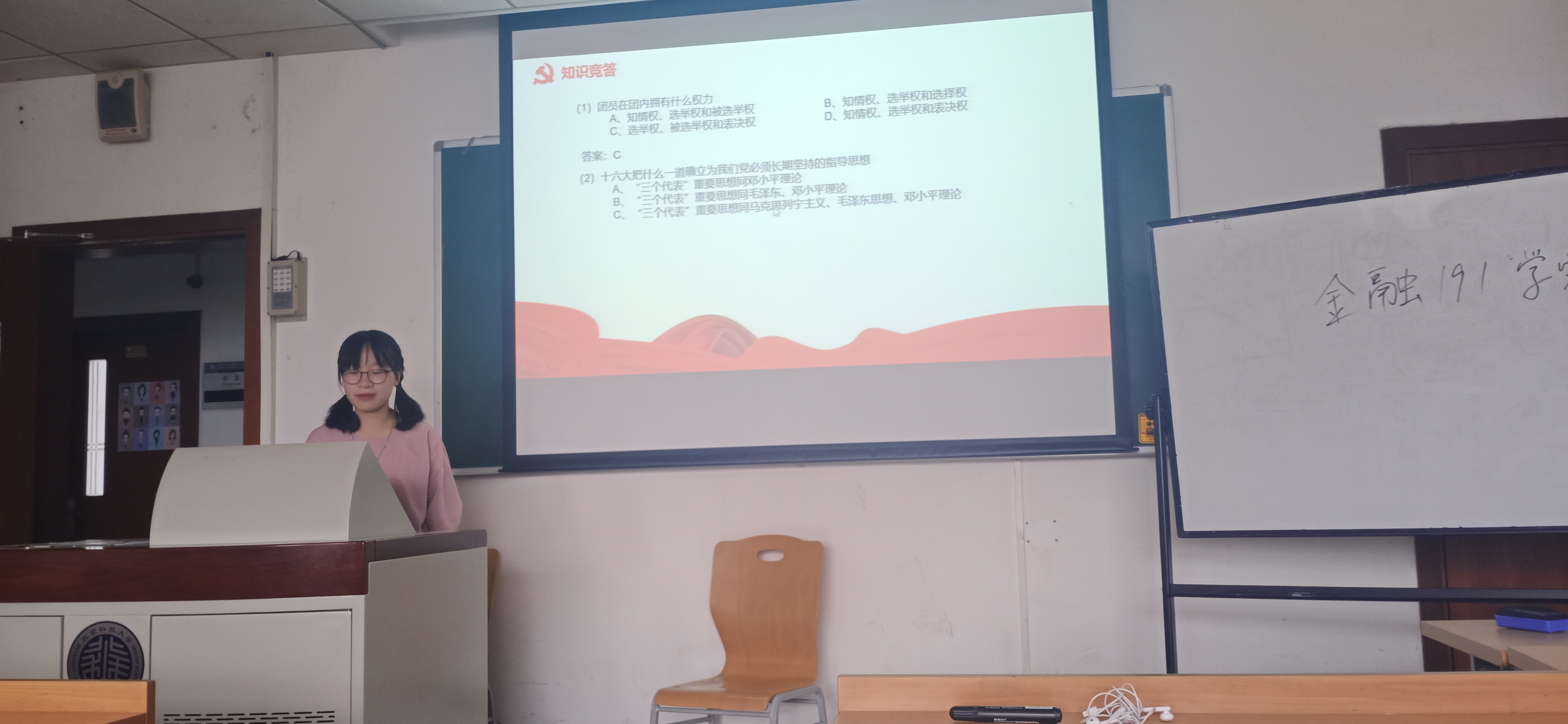 2021年5月13日15:20,金融191团支部建党一百周年系列活动之“学党史 强信念 跟党走”主题团日活动在beat365英国官方网站510召开。活动由金融191团支书马一鸣同志主持,全体金融191团支部成员到场参与。