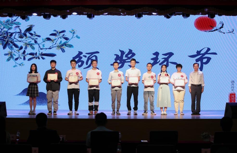 “赵瑟清相似,胡琴闹不同。慢弹回断雁,急奏转飞蓬。”当诗词遇上胡琴,又将以新的姿态向大家展示它的美好。来自文法学院的学生国乐团带来胡琴重奏《采红菱》。第三轮比赛为“飞花令”,在场选手你来我往,展现了自己丰厚的诗词储备功底,经过激烈比拼后,前三名结果诞生,分别是状元金琣明、榜眼陈潇然、探花盛翔宇。于成文、彭庆红分别上台为前三名选手及十二强选手颁奖。
