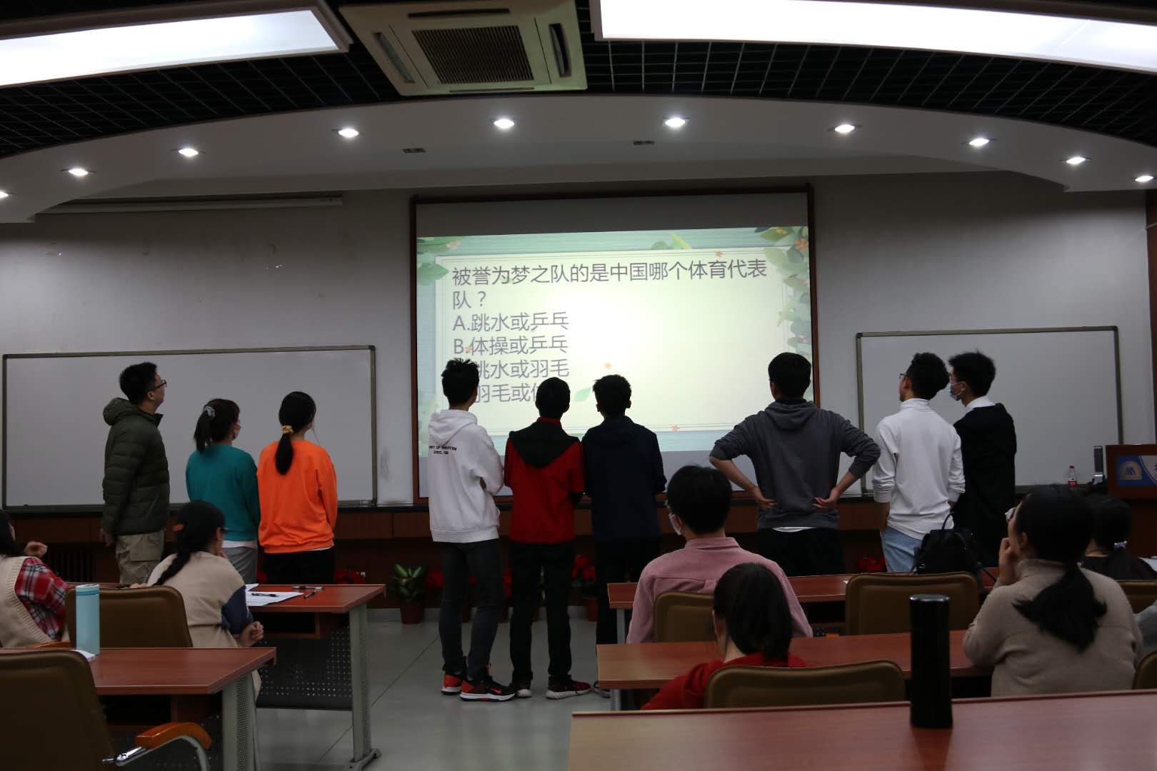 在这一环节中,各组慎重的选择题目难度并进行作答,是对能力、心态、运气的多重考核,场上比分瞬息万变,观众们看得津津有味,其中管理2001班更是用他们的勇气为全场带来了很多的欢乐,气氛达到了高潮。