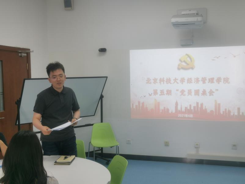 在张洪榛老师的主持下,第五期“党员圆桌会”活动正式开始,会议进入第一阶段:党支部学习成果汇报。