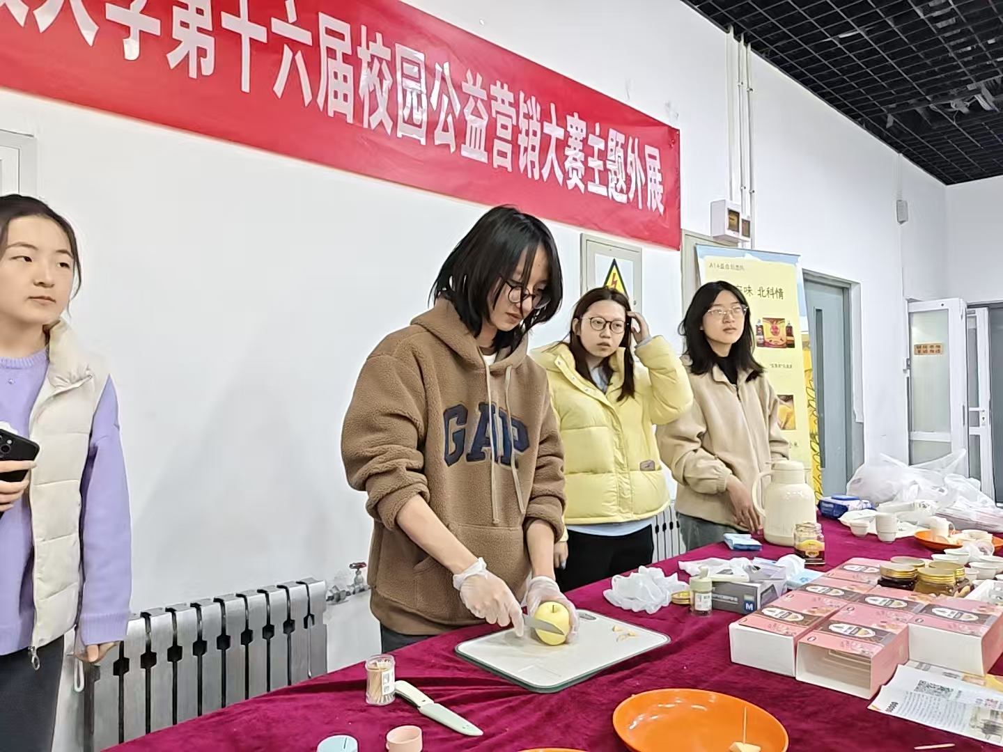 乘着秋收时节的浓浓秋意,第十六届校园公益营销大赛鸿博园四楼专场活动顺利举办。活动现场以公益为纽带,聚焦特色助农好物,将蜂蜜的清甜与秦安苹果的果香融入校园,用一颗“北科心”传递“秦安情”。