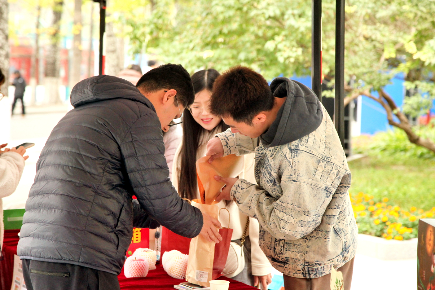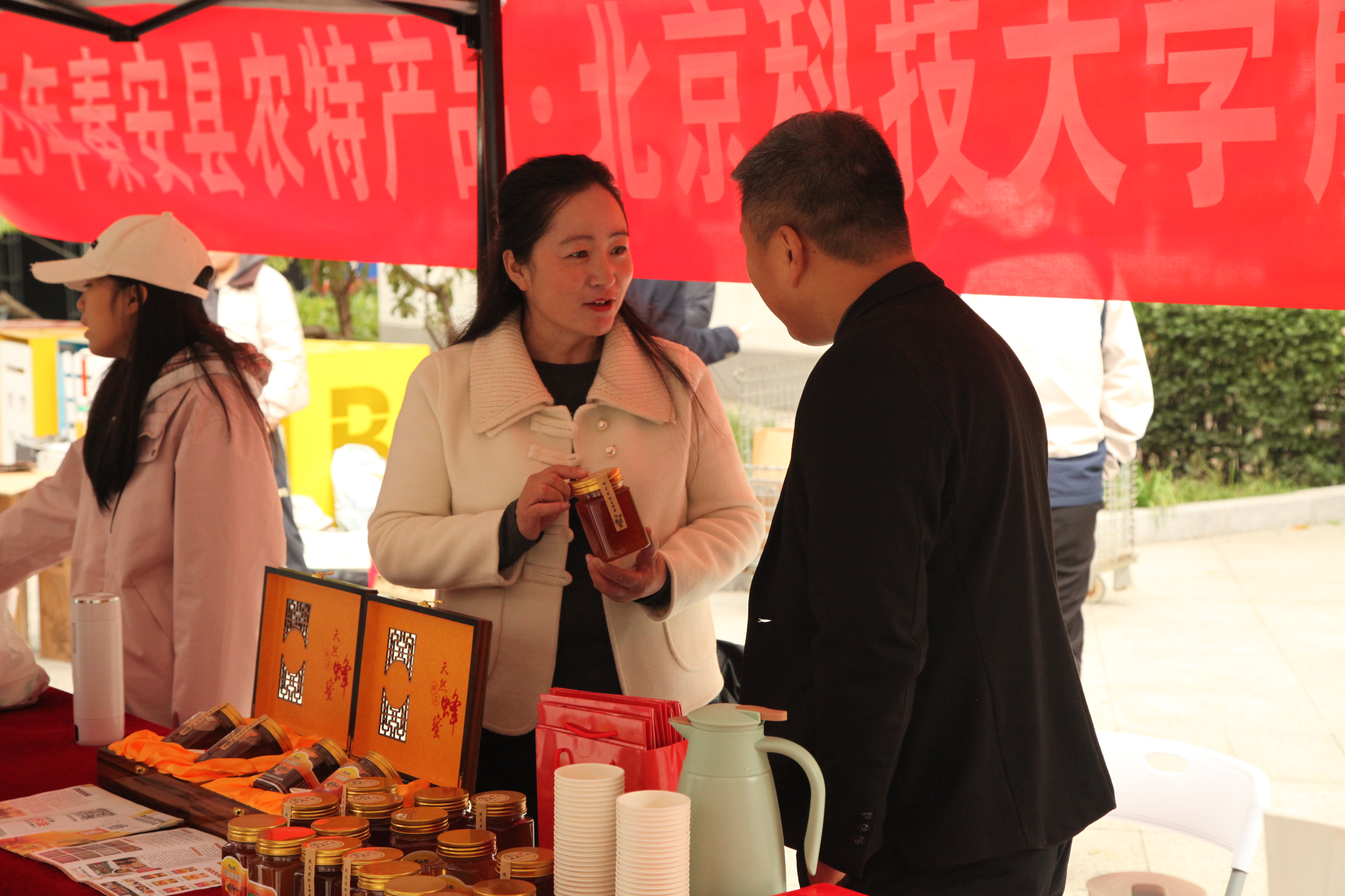 乘着秋收时节的浓浓秋意,10月21日、22日中午,beat365英国官方网站秦安农产品展销会在鸿博园对面广场如期举行。在这个收获的季节里,老师同学们积极参与,用一颗“北科心”传递“秦安情”。