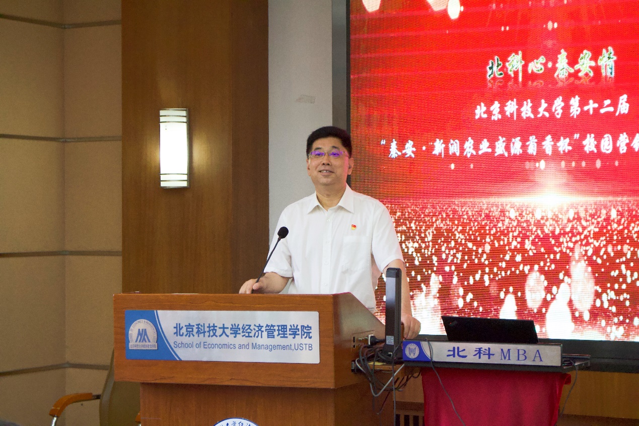 与会嘉宾共同观看了闭幕式视频《北科心·秦安情》,回顾了开赛以来各团队的精彩表现。随后武森表示,经管学院积极贯彻落实中央和学校精准扶贫的基本方略,举全院之力助力秦安县脱贫,营销大赛便是其中一项有力举措,希望各位同学再接再厉,持续助力秦安发展。