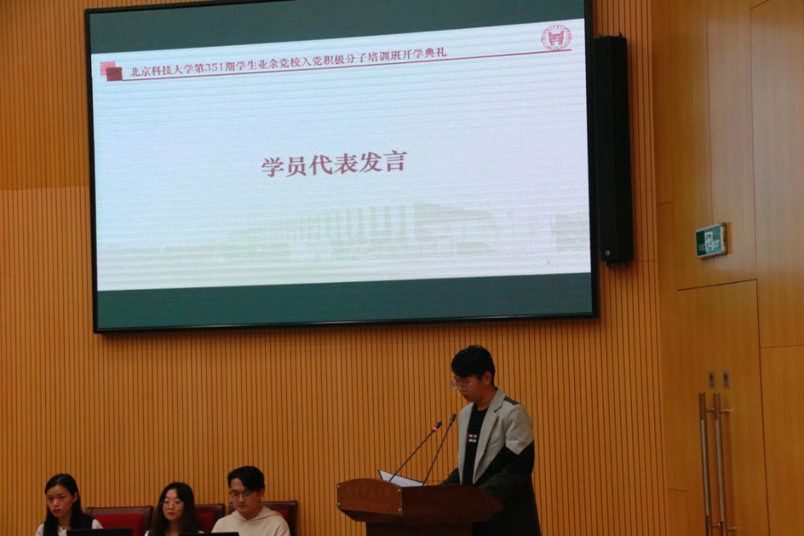 接着由来自党校四班的学员张吉宸进行发言,代表学员们感谢党校为他们提供了深入认识党的机会,一定会加倍珍惜学习机会,争取提升自己的党性,争取早日做到思想上入党。