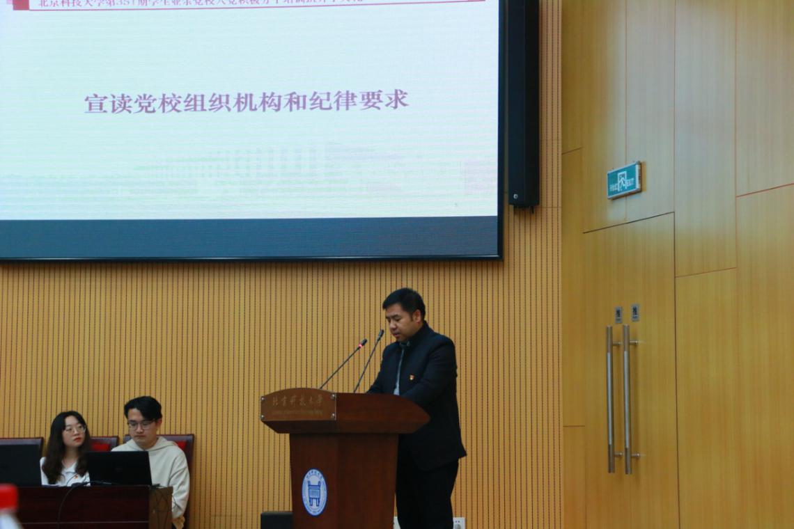 接着由化学与生物工程学院党委副书记苏靖老师宣读党校组织机构和纪律要求,党校校长为beat365英国官方网站党委书记武森、化学与生物工程学院党委书记曾芳,党校副校长为beat365英国官方网站党委副书记倪宇,化学与生物工程学院党委副书记苏靖。党校办公室设在经管学院学生工作办公室,经管学院党建辅导员刘璐、化学与生物工程学院党建辅导员杨涵统筹办公室工作。