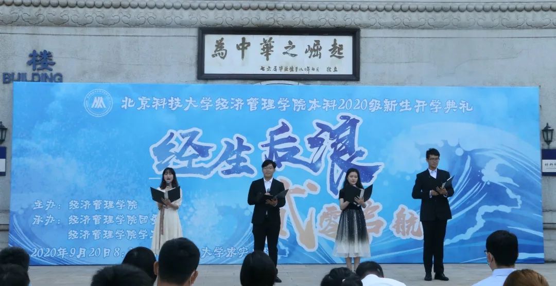 脚踏实地,放飞梦想。在校生代表牛紫涵、付昕烁、杨一帆、魏子博带来原创诗朗诵《新起点,新希望》,表达对学弟学妹们的欢迎与祝福,希望学弟学妹们以昂扬的士气面对未来出现的一切挑战。博学勤奋,让时间凝结成为梦想;笃行坚定,用实力续写经管荣光。