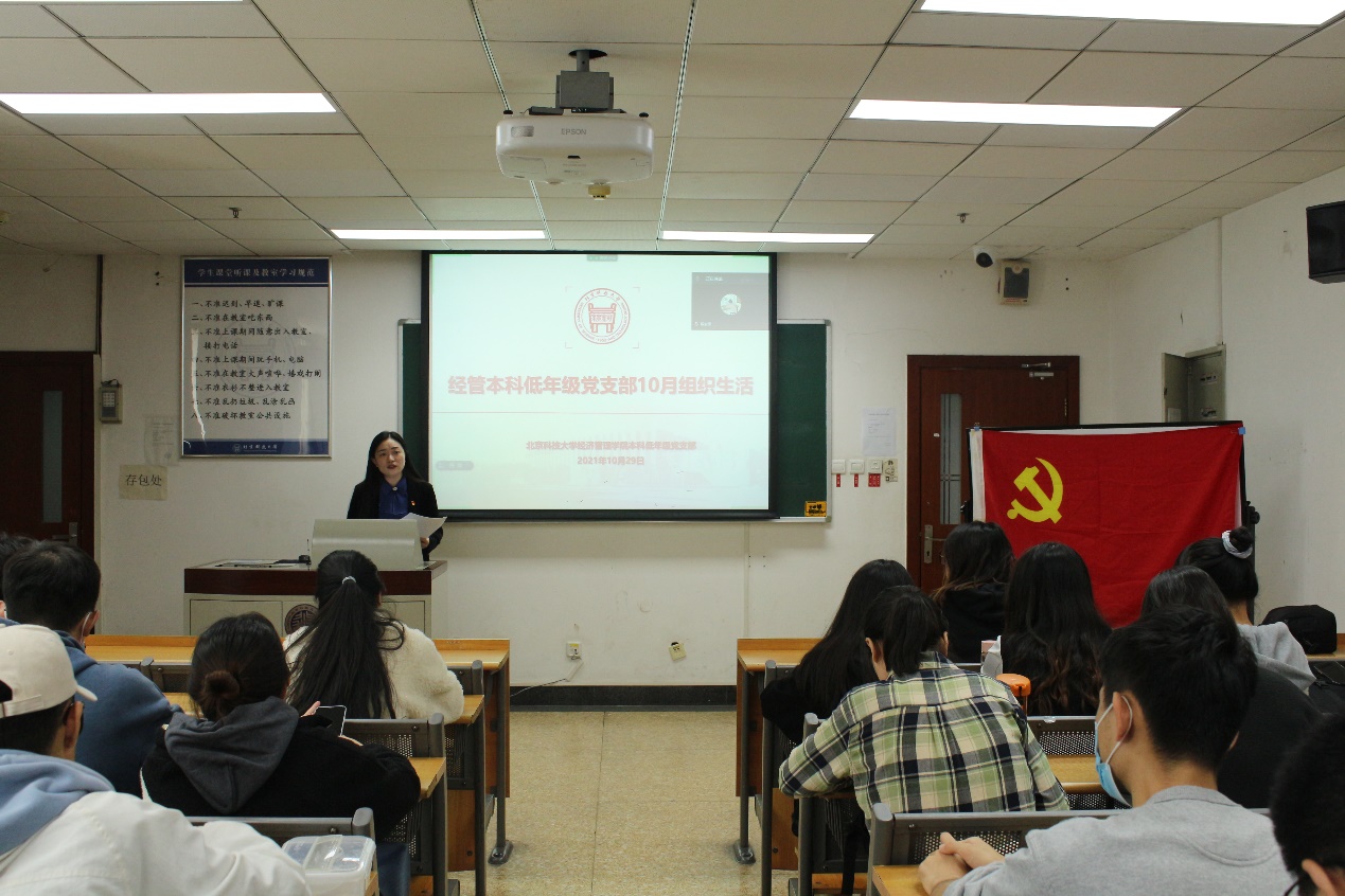 10月29日,beat365英国官方网站本科低年级党支部于经管楼512举办10月下旬理论学习活动。党支部全体成员出席,活动由支部书记张洪榛主持。