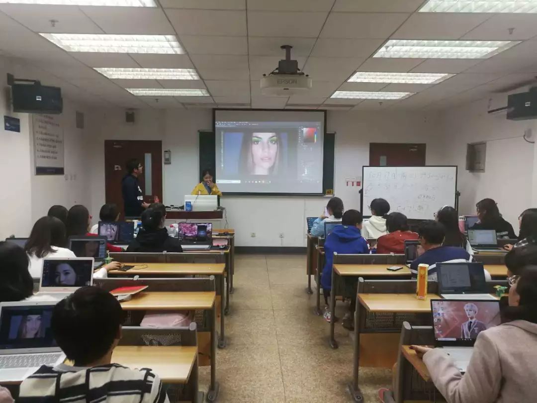 来自学生会宣传中心的崔葆洁首先为同学们带来PS具体操作的讲授。她首先为大家讲述了PS软件中常用工具的用途以及PS的操作概念,随后通过三个具体案例,分别对滤镜、蒙版、人脸修图等进行了逐步的详细讲解。同学们听得十分认真,并积极踊跃地进行尝试,把刚刚学到的知识运用地得心应手。