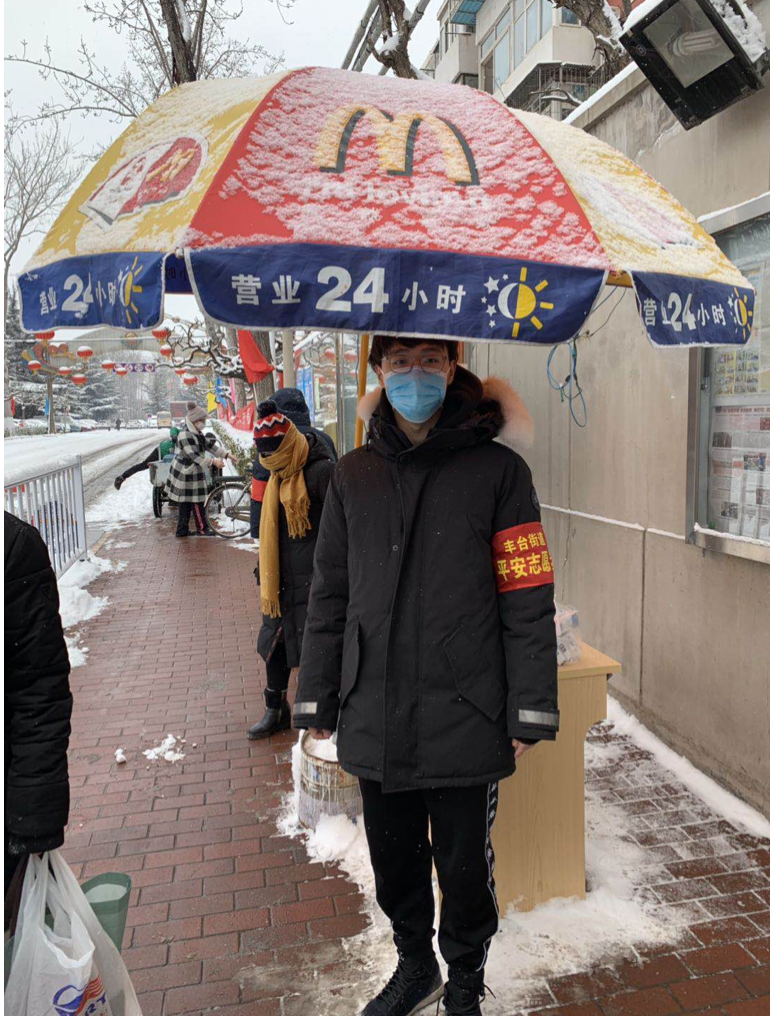 “和前线的医务工作者一样,那些在平凡岗位工作着的人们,也在争分夺秒地努力着,和疫情作抗争。每一份坚守,每一次付出,都是春日到来前的期盼。”