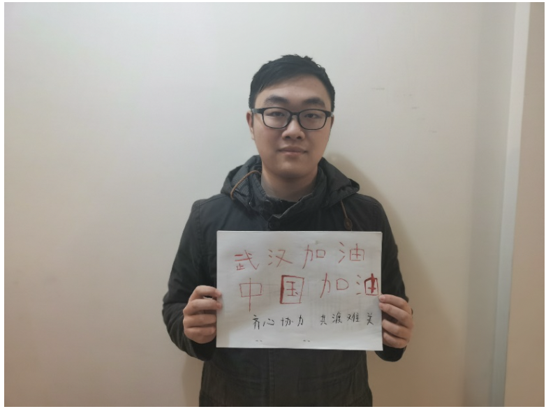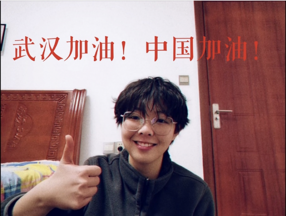 “2020,本应是一个“爱你爱你”的幸福年,但随着疫情的蔓延,微博、微信平台的各种消息都让我揪心不已。作为一名普普通通的大一学生,我只能和家人闭门不出,隔着屏幕默默为武汉加油、为中国祈祷。”