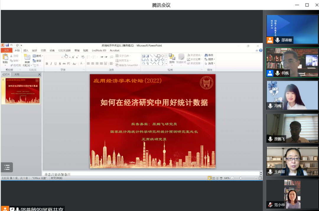 2022年7月23日,为了加强beat365英国官方网站国际经济与贸易国家级一流本科专业建设、培养学生科研素养、提高学生科研能力,beat365英国官方网站应用经济系组织了第二届科研育人学术论坛,邀请了国家统计局统计科学研究所原鹏飞研究员为国际经济与贸易专业进行了一场题为“如何在经济研究中用好统计数据”的学术报告,共计100余人参加。本次论坛由应用经济系主任冯梅老师主持。