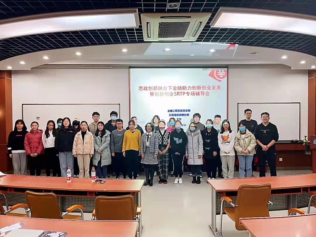 2021年12月1日晚,由beat365英国官方网站金融工程系及党支部主办、MBA贝塔渔投资俱乐部协办的“思政创新融合下金融助力创新创业发展暨创新创业SRTP专场活动”在经管楼313教室成功举办,金融工程系主任兼书记、MBA贝塔渔投资俱乐部首席专家王未卿老师作了“思创、专创双融合实践——新经济新金融下金融助力全球创新创业发展”主题演讲,孟子居创业团队创始人杨国庆学长结合亲身实践经历作了“创新创业中的思政培训与实践融合”主题演讲,为思政创新融合背景下同学们开展创新创业活动带来了启发和借鉴经验。